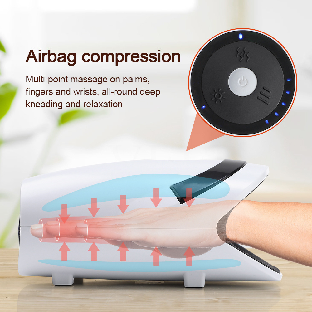 Working mode: 3 modes - individual pressing (green light), pressing+vibration (blue light), pressing+vibration+hot compress (red light)