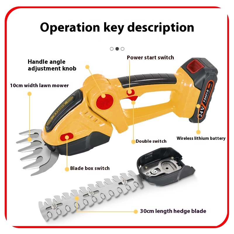 Specification: green hedge pruning machine red packaging in plastic box 24 V1 charging,