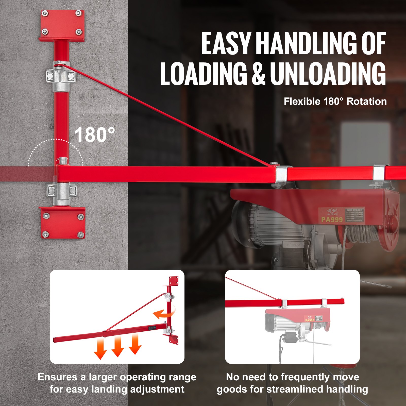 Adjusts to Your Needs: Enjoy the flexibility of 180-degree angle adjustment with this electric hoist support arm, expanding your operational range for smoother, more efficient lifting tasks. No more constant repositioning—get the job done with ease.