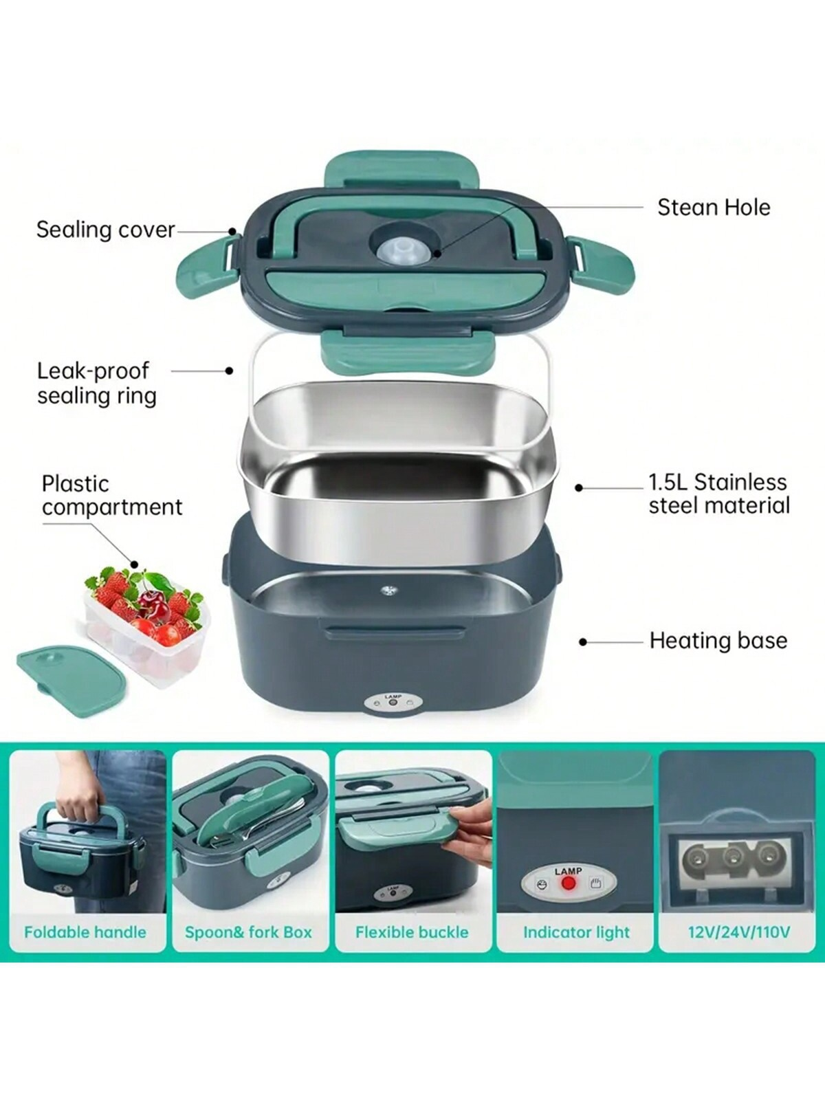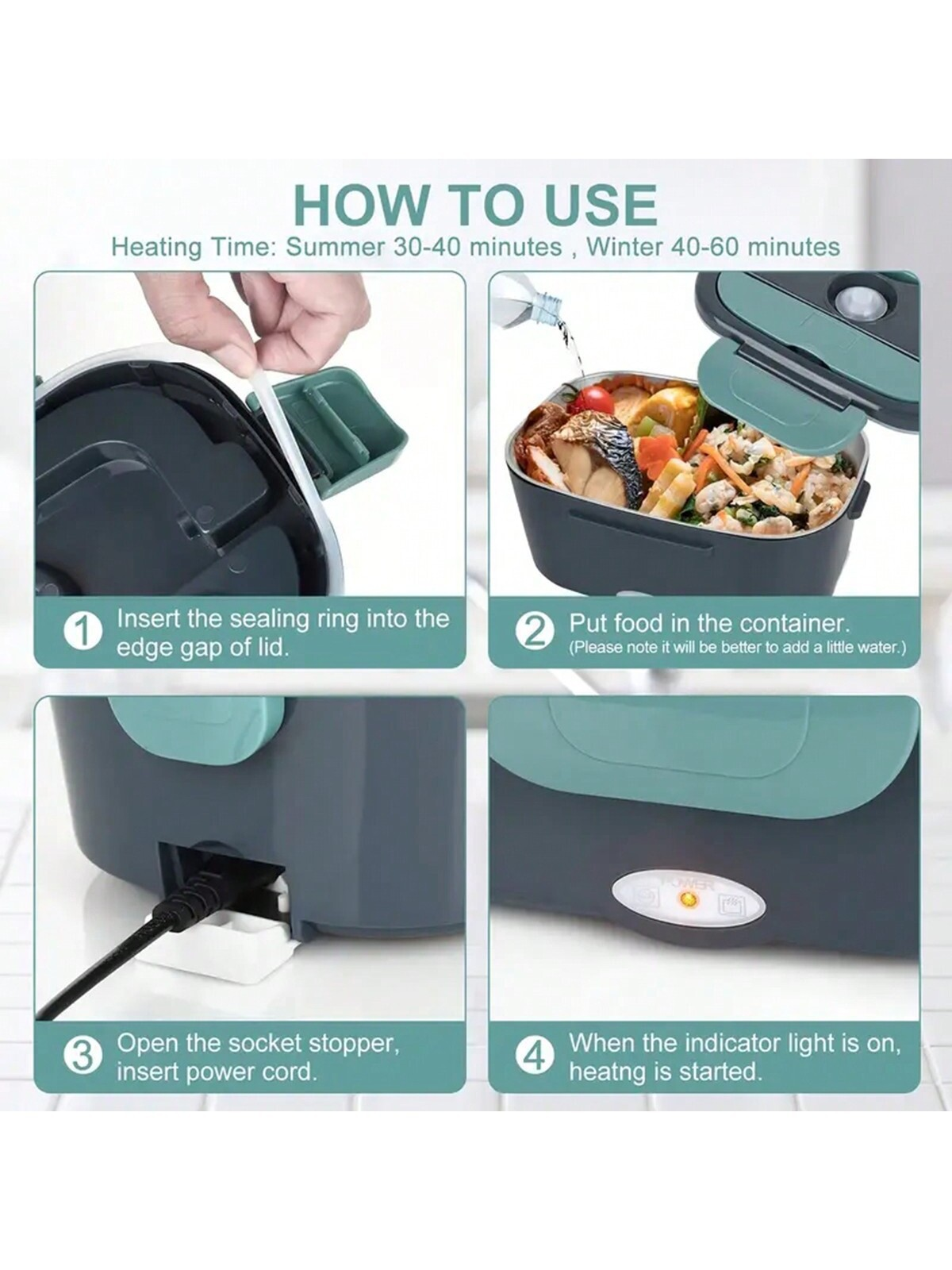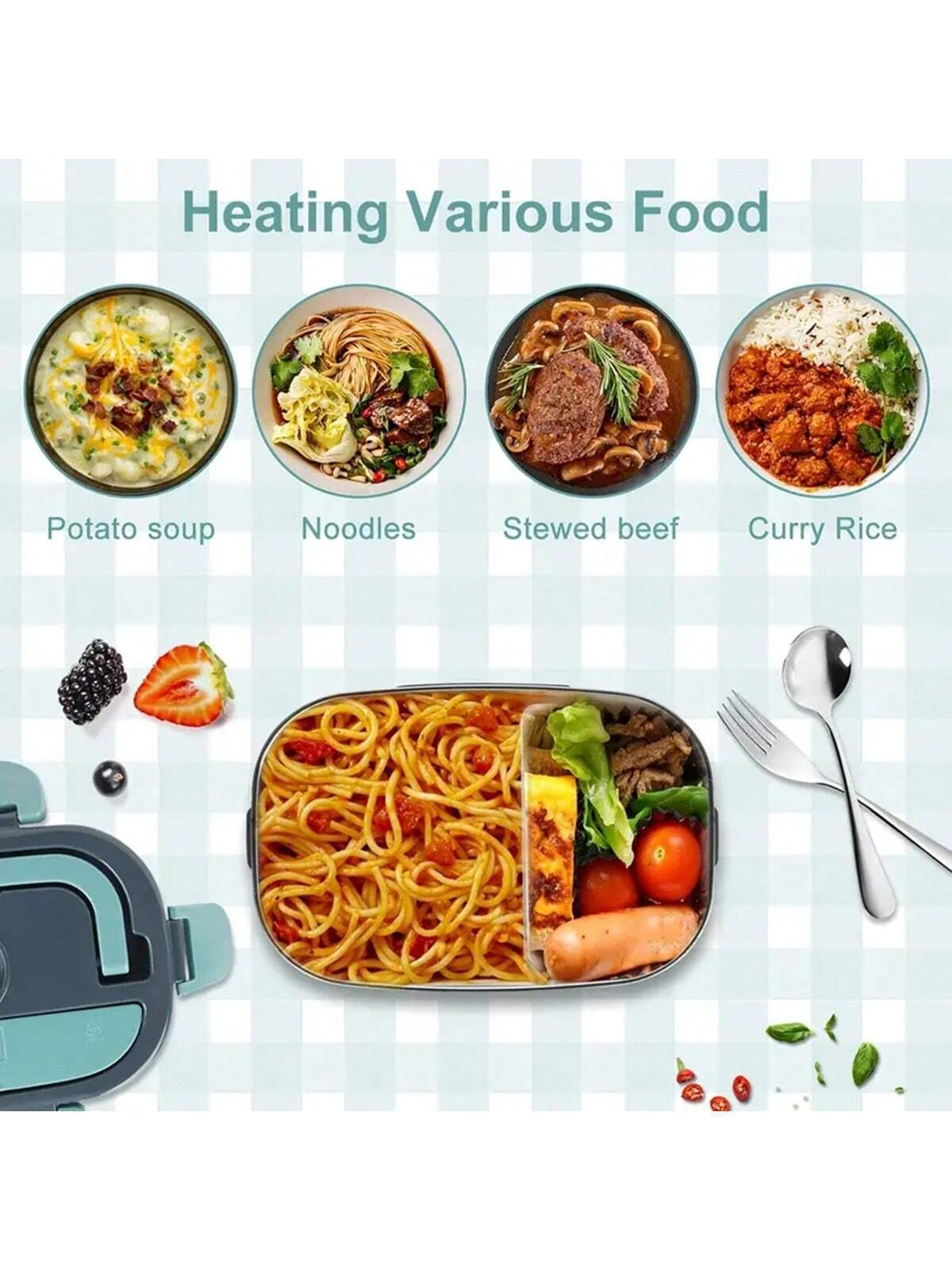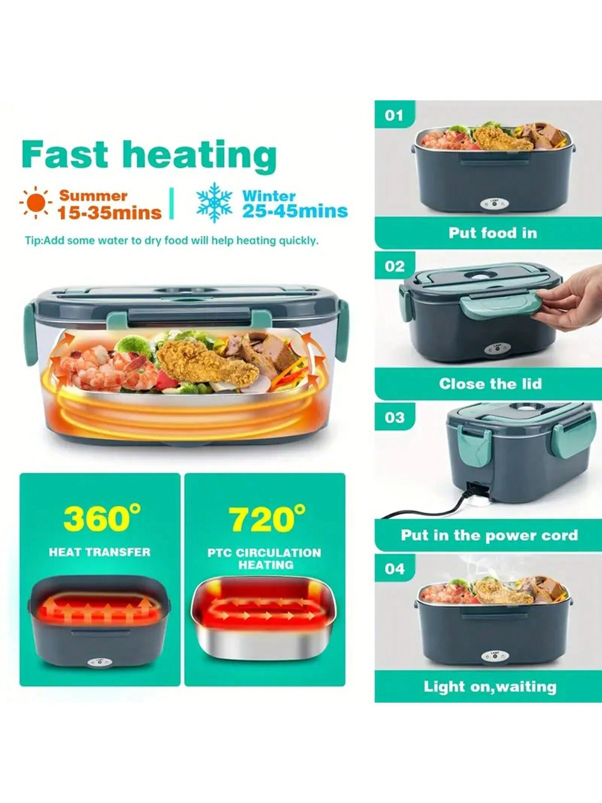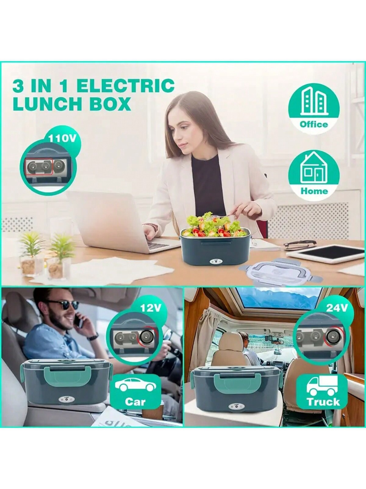 Electric Lunch Box Food Heater, 3 in 1 Ultra Quick Heated Lunch Boxes for Adults, 12V/24V/110V Portable Food Warmer for Car/Truck/Office With Fork Spoon and Insulated Carry Bag