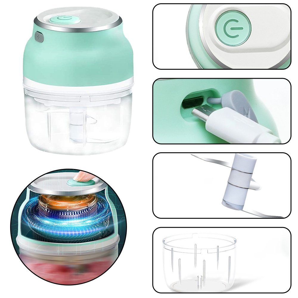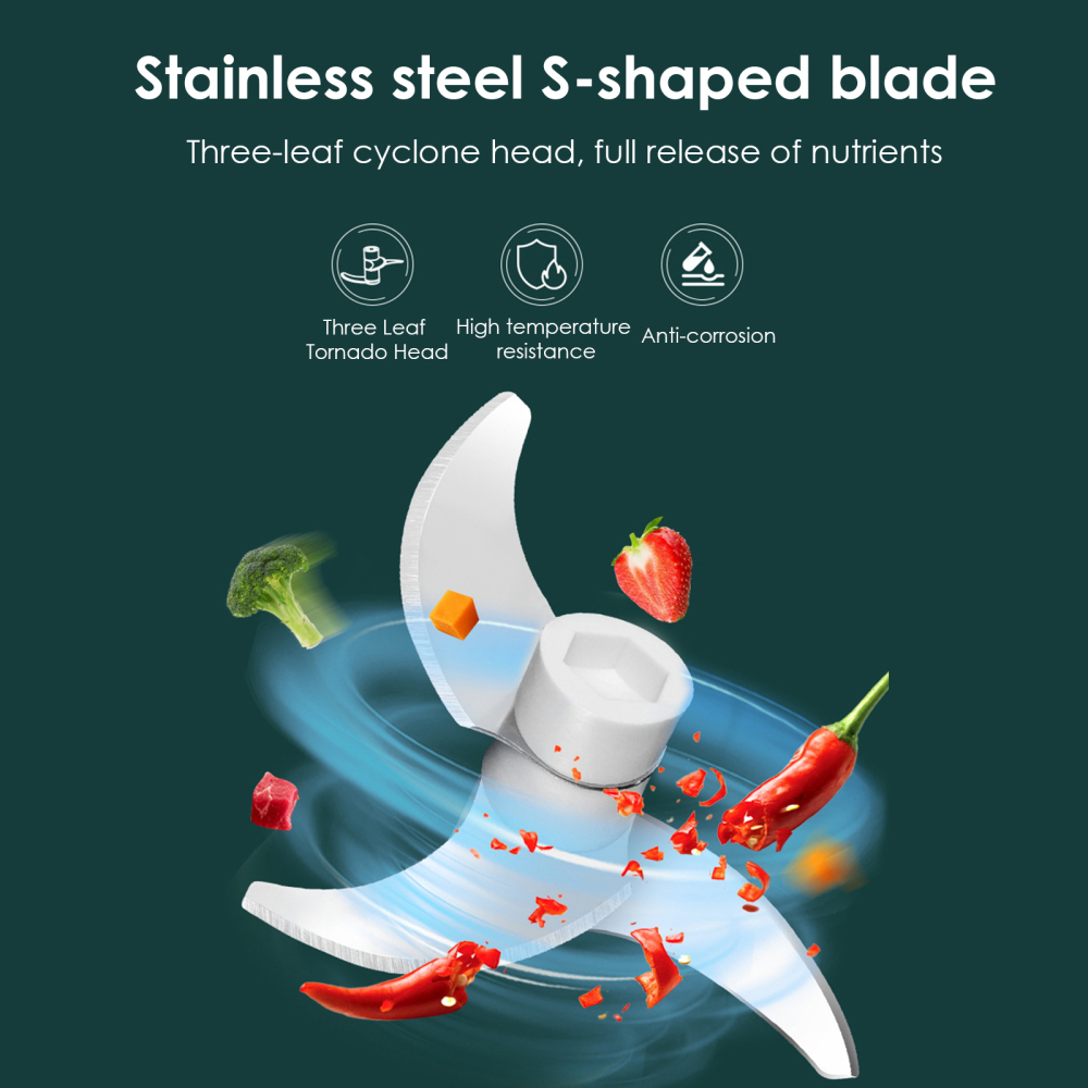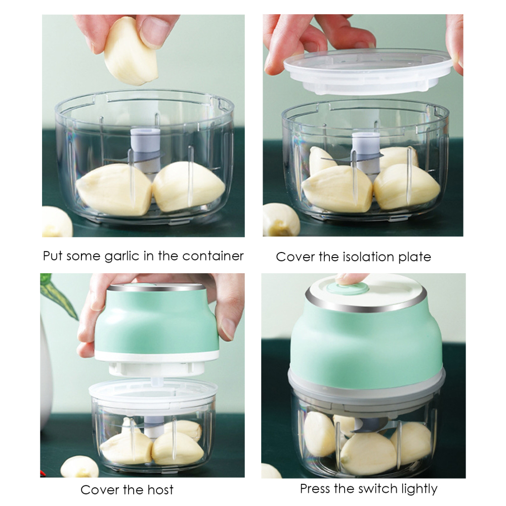 The new intelligent electric garlic masher, stainless steel S-shaped three-piece cyclone tableware knife head, can easily grind garlic, pepper, meat, vegetables and fruits, and quickly make delicious ingredients and juices.