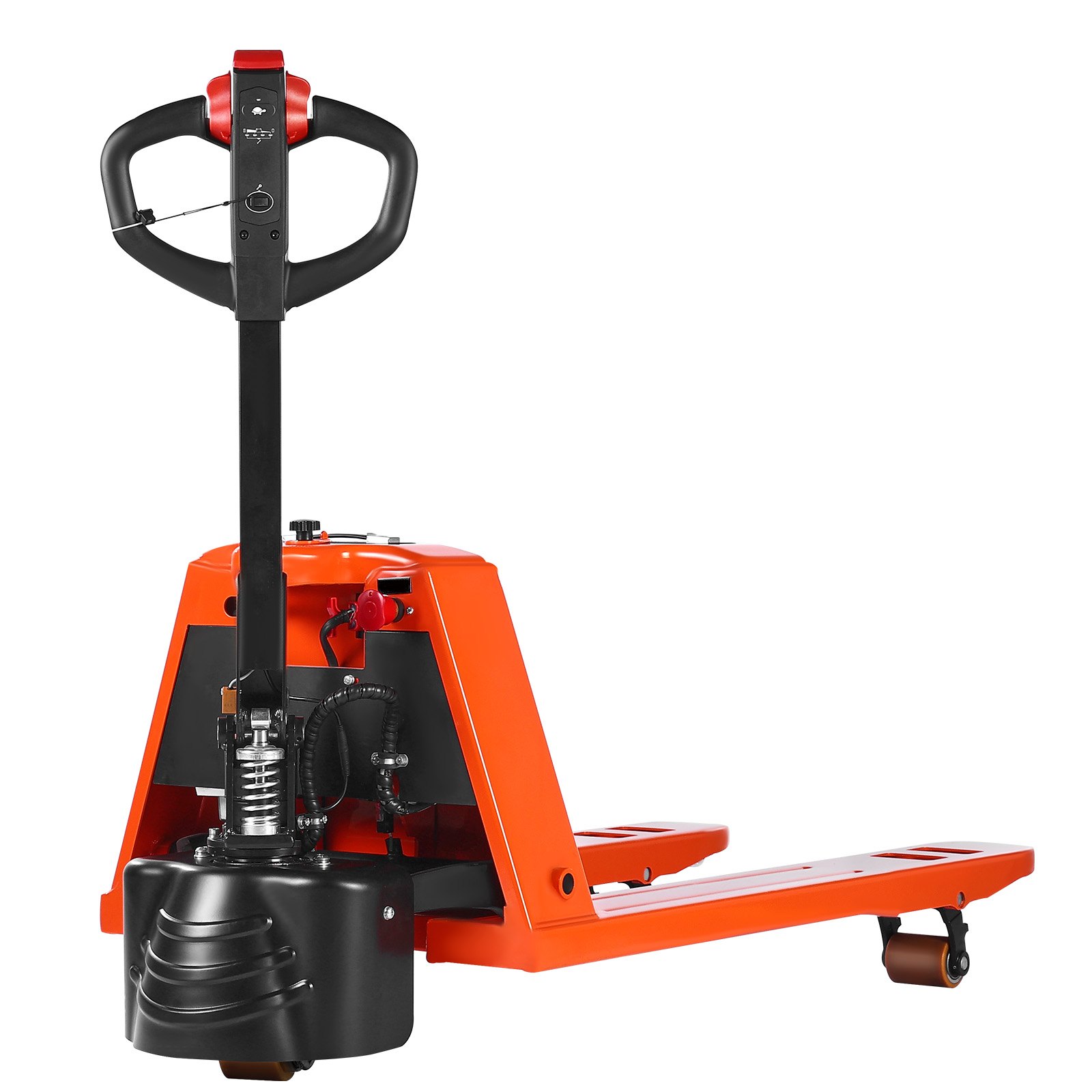 Easy Maneuverability: This compact pallet jack truck(63.78 x 26.77 x 47.64 in) has a 48.43-inch turning radius, making it fit for tight spaces in warehouses or supermarkets. It offers smooth direction changes with ease