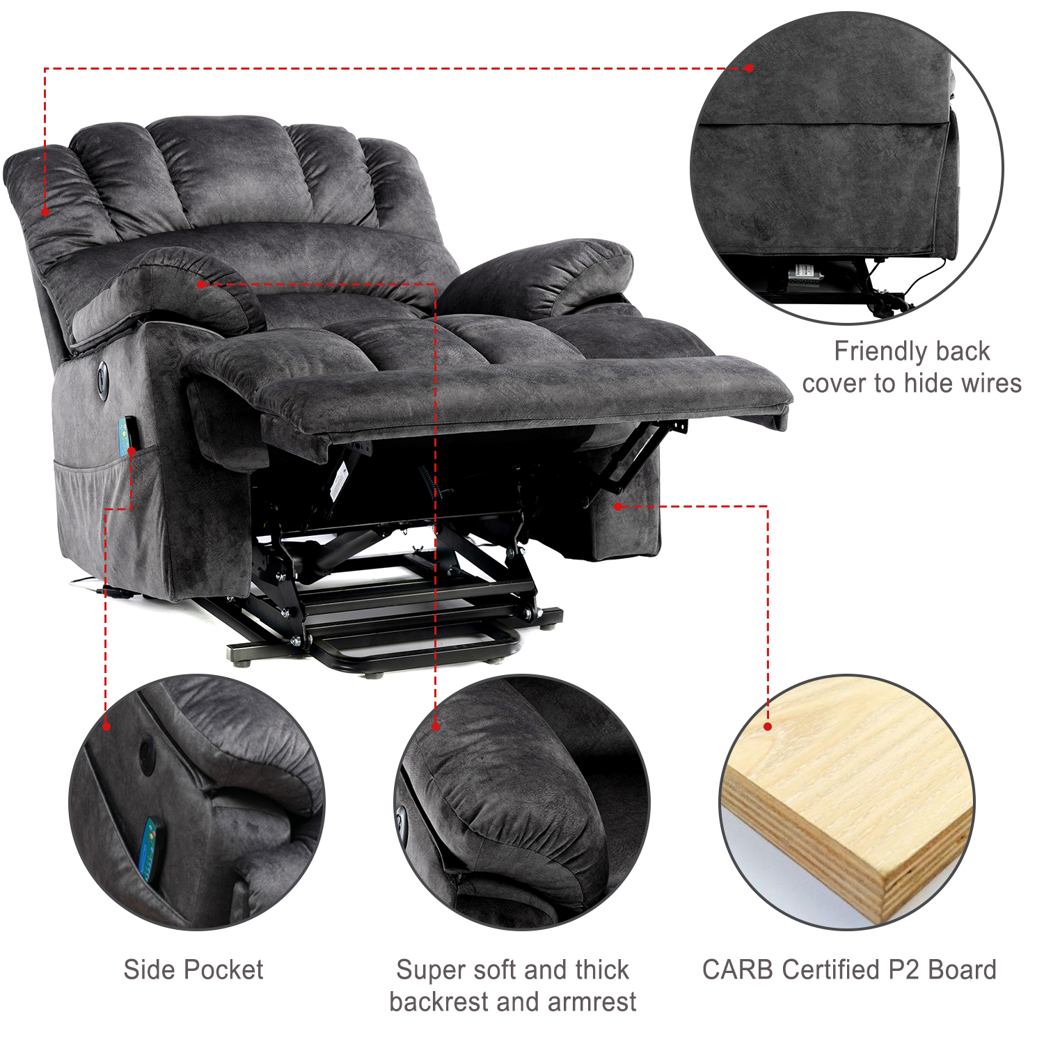 Product Name:Electric Power Lift Recliner Chair Sofa with Massage and Heat for Elderly, 2 Side Pockets, USB Ports