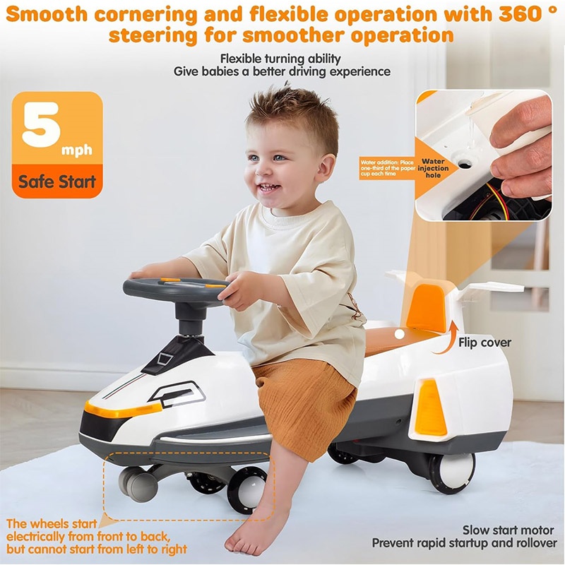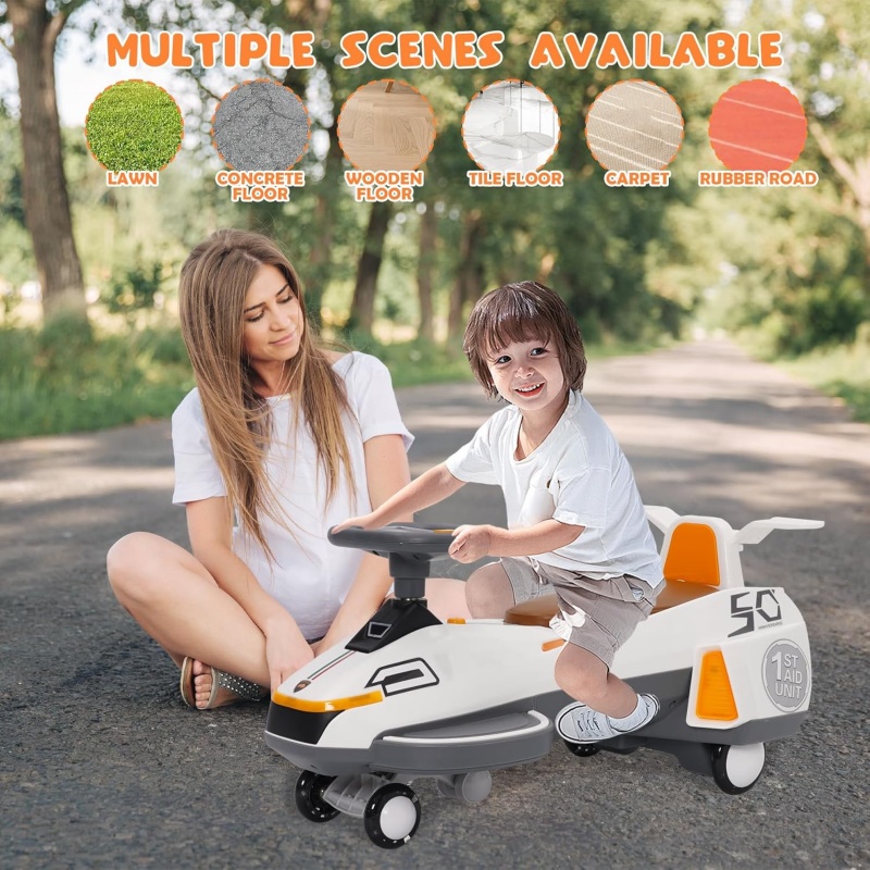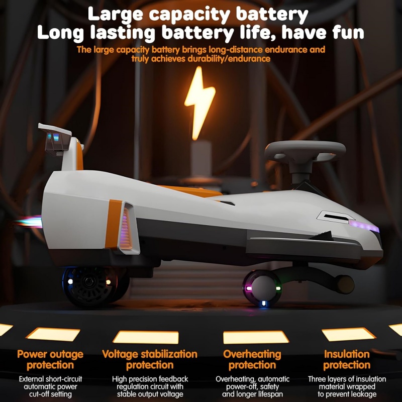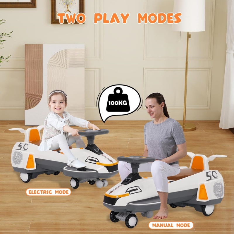 【Suitable for】The electric twisting car can stimulate your imagination and hands-on ability, but also develop hand-eye coordination, sense of balance. Ergonomically designed oversized seat. With a weight capacity of up to 220 lbs, even adults can experience the fun.