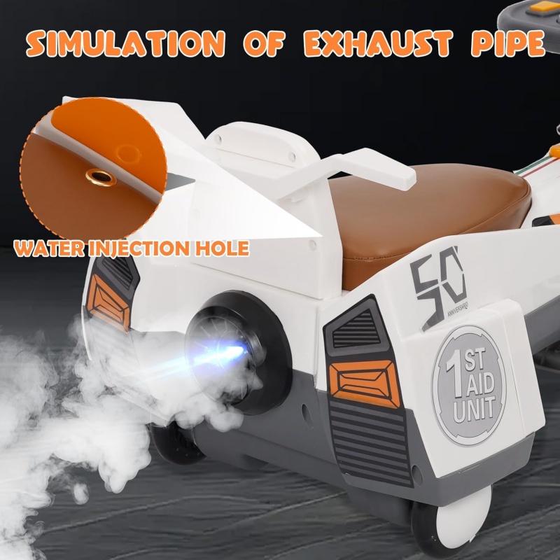 【Cold Mist Water Spray Function】There is a water spray device at the rear of the electric bike. Simply add water to spray water. The water spray simulates an engine and adds a realistic atmosphere to this adventure. The rising water spray seems to be the airflow from the aircraft engine!