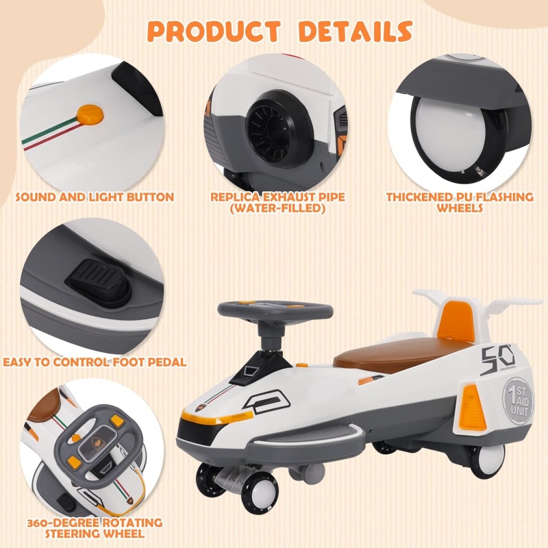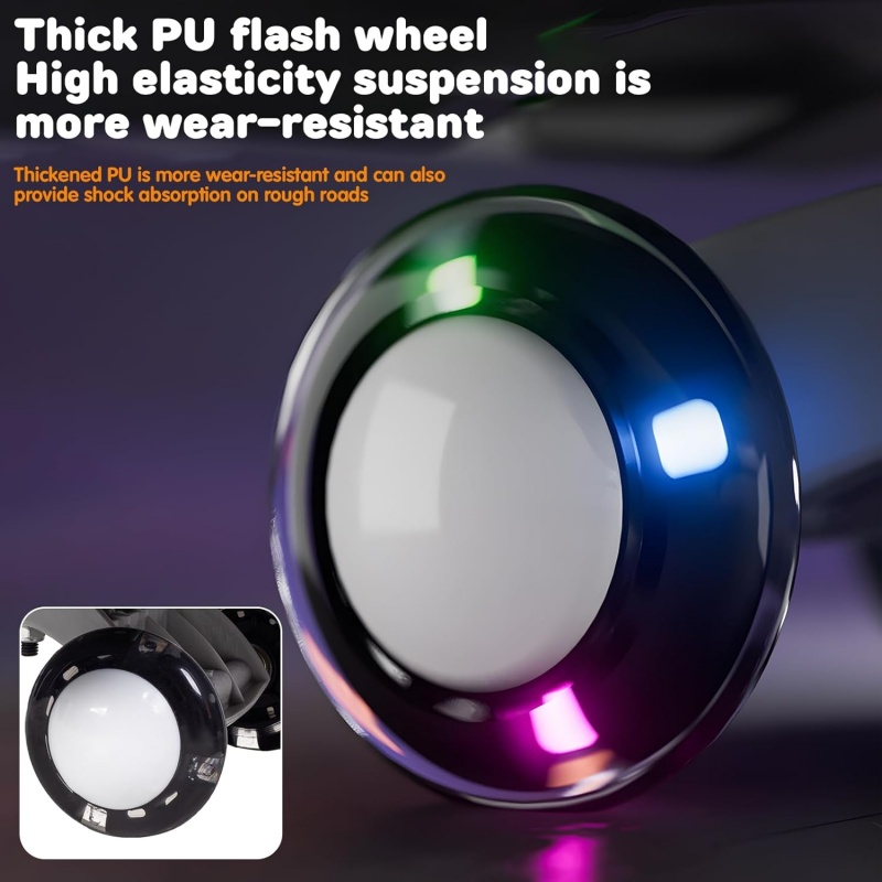 【Silent Shock Absorption Light Emitting Faux Leather Wheel】 2-in-1 swing car light emitting shock absorption faux leather wheel is one of the highlight of the twisted car. During driving process, the wheel not only emit cool light to illuminate the road ahead, but also effectively dampen the shock, giving you a smooth and comfortable riding experience.