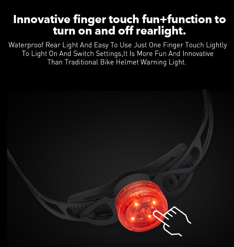 ■ Innovative rear light, easy to use just one finger touch lightly to light on and switch settings, it is more fun and innovative than traditional bike helmet with warning light