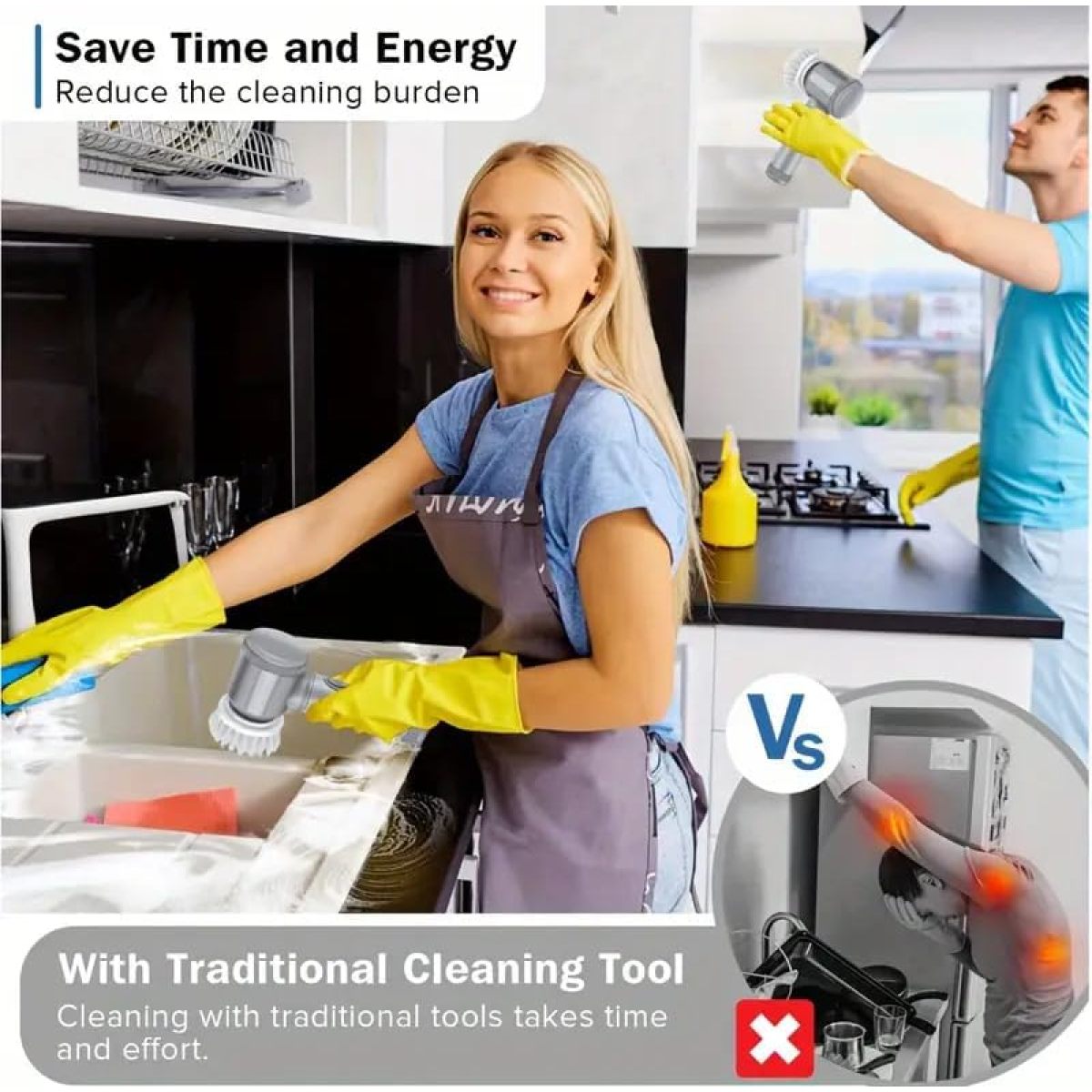 【6in1 Portable Electric Cleaning Brush】This electric spin scrubber is made of high-quality ABS material,,The Portable new cordless handheld electric brush is ergonomically designed, portable, lightweight, comfortable to hold and easy to clean. Get rid of the troubles caused by the entanglement of the traditional power cord, you can clean it anytime and anywhere without dragging the power cord. Save your time and clean easily and effectively. Textured silicone grip provides a firm grip even with wet hands.