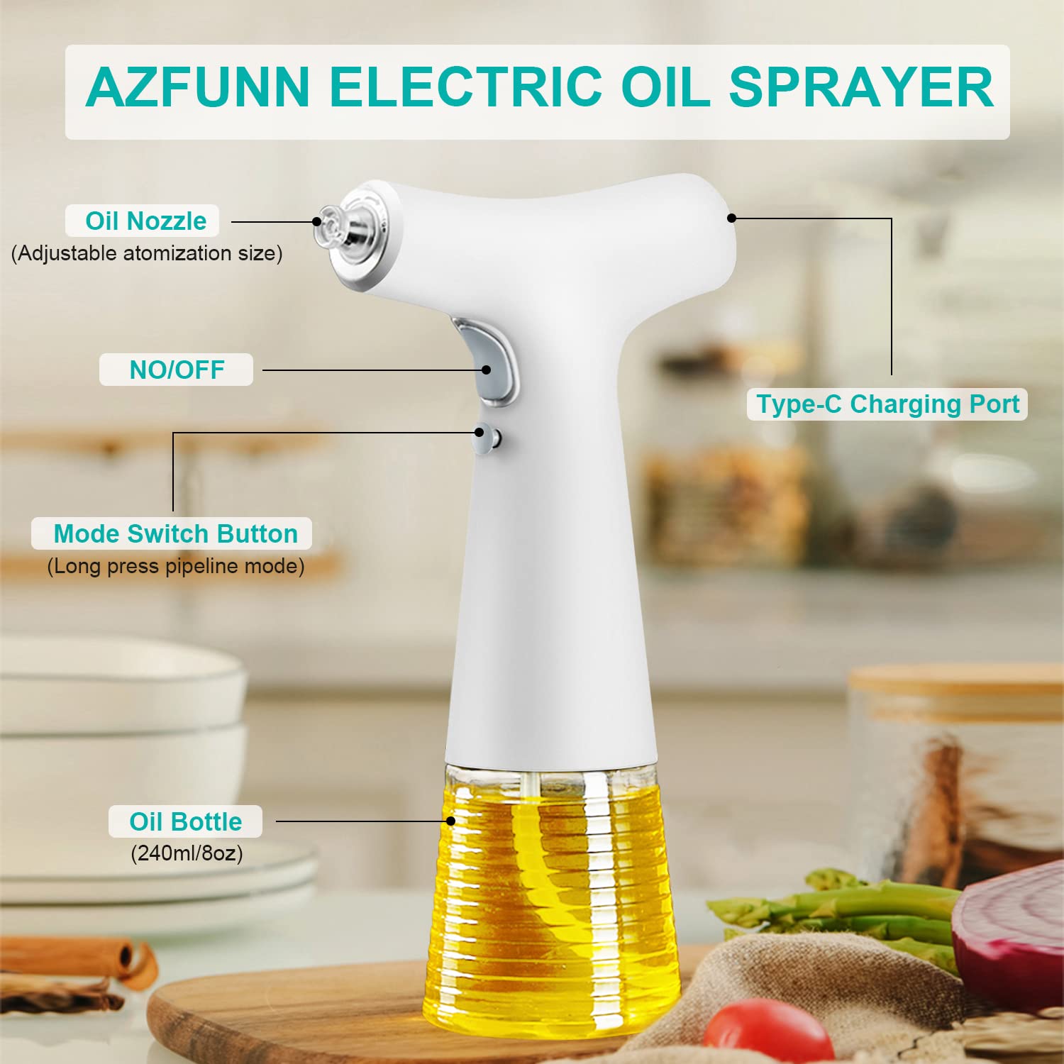 MULTIFUNCTIONAL: This electric oil sprayer is suitable for all kinds of edible oils, such as olive oil, sesame oil, walnut oil, linseed oil, rapeseed oil, sunflower oil, peanut oil, soybean oil and other edible oils and water.