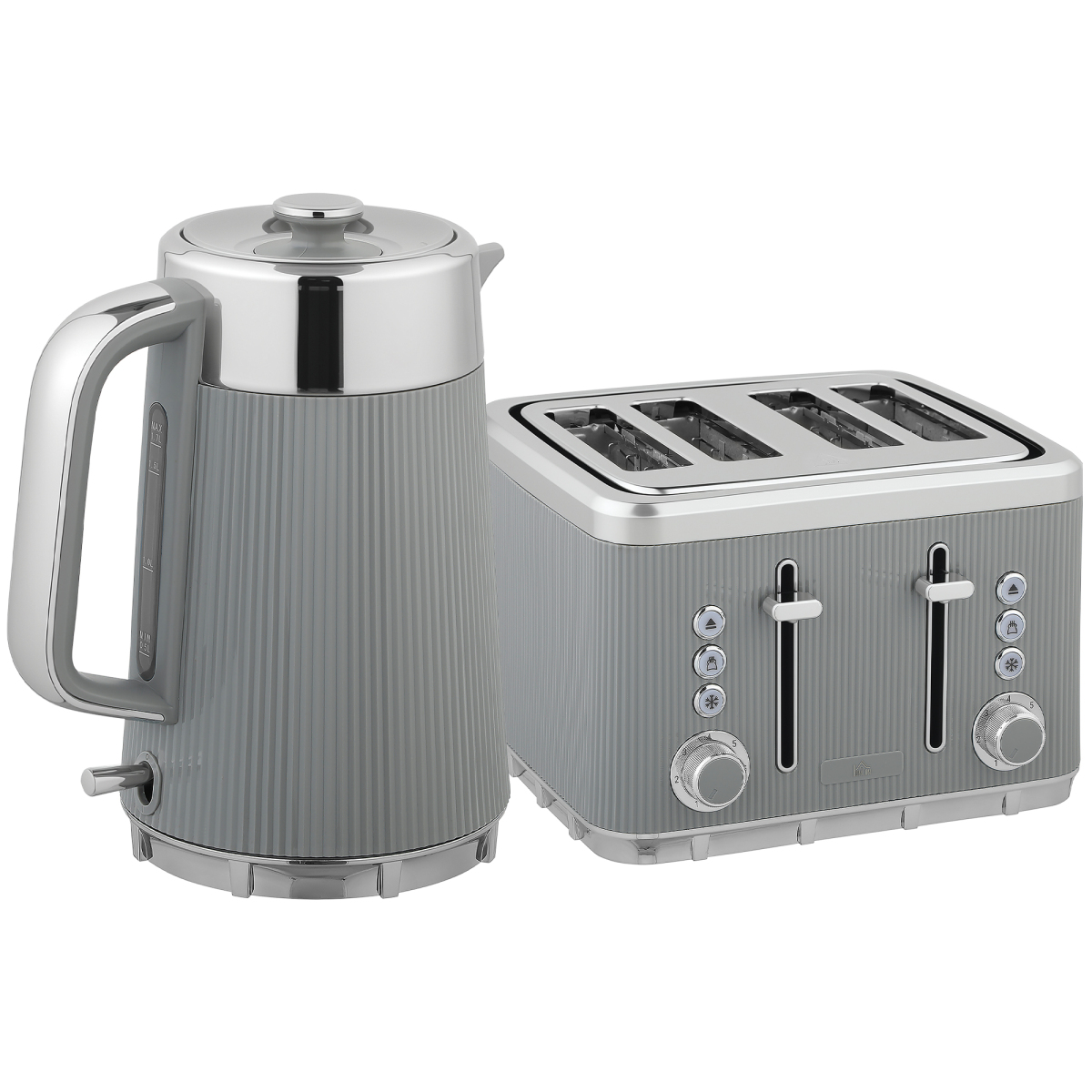 Electric Stainless Steel Kettle And Toaster Set, 3000W 1.7L UK Strix Thermostat Fast Boil Kettle W/ Limescale Filter, Cool Touch Body, 4 Slice Toaster With 7 Browning Levels, Crumb Tray, Taupe