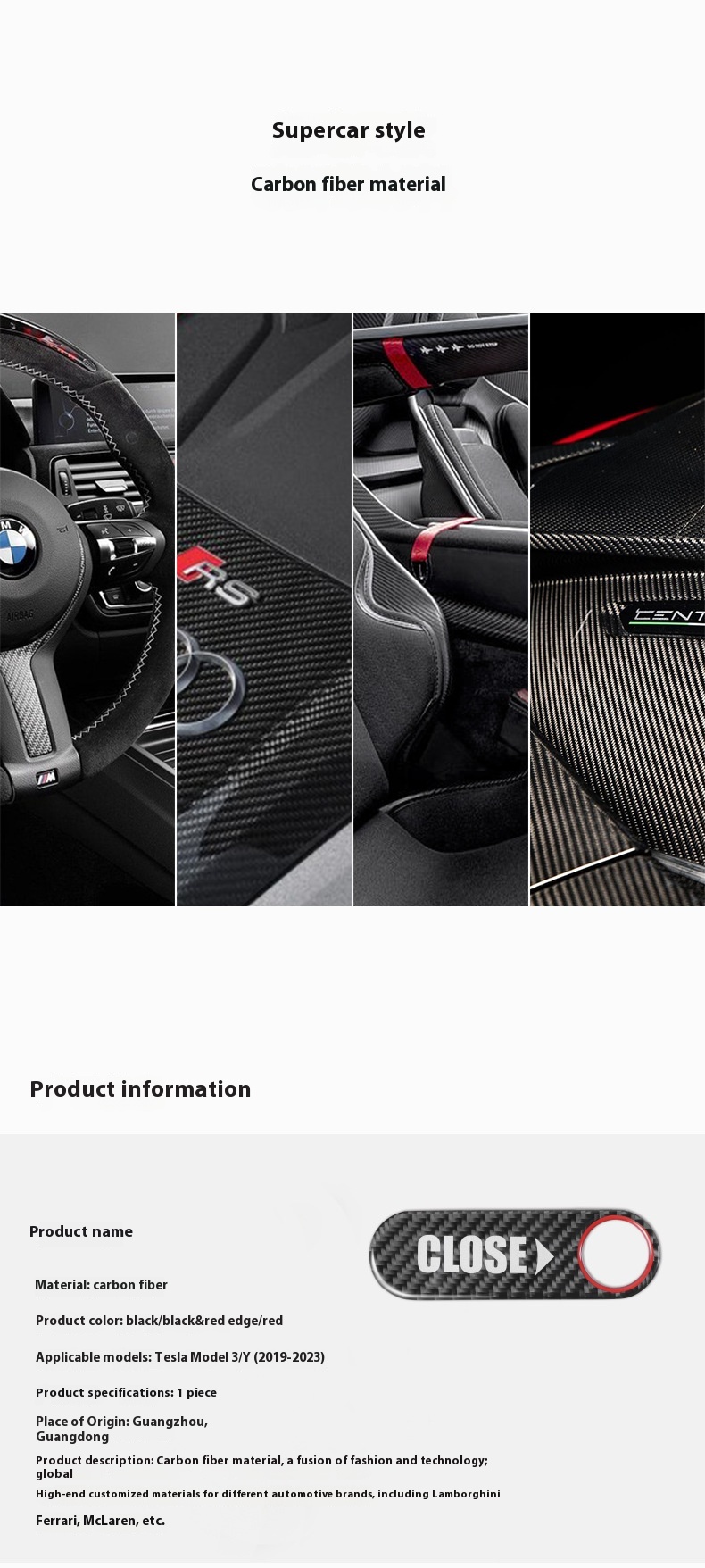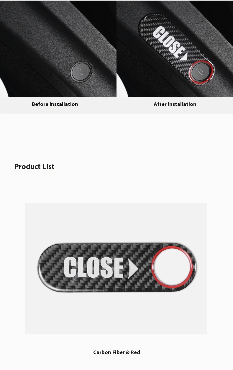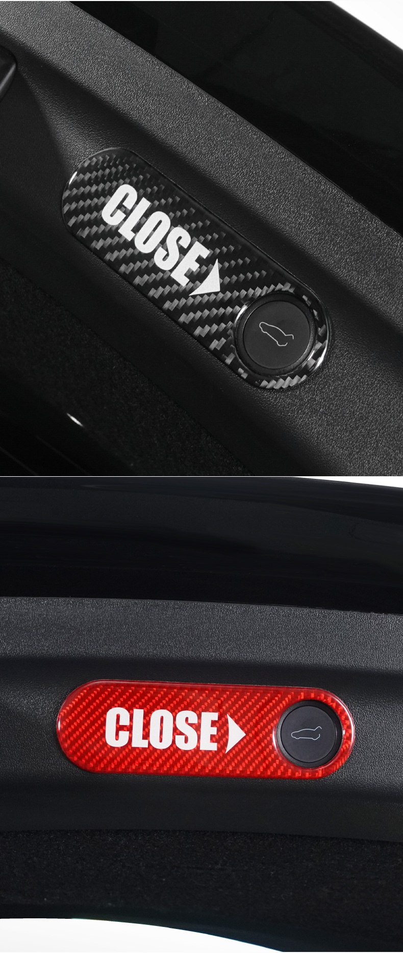 Color: carbon black trunk button stickers/red edge, carbon red trunk button stickers, carbon black trunk button stickers