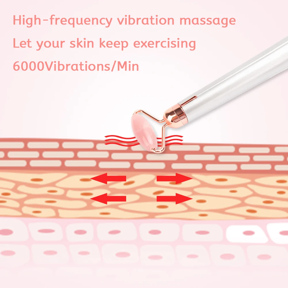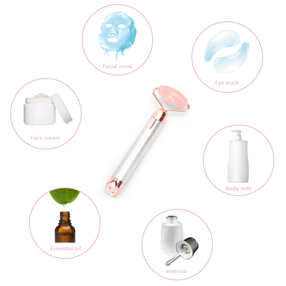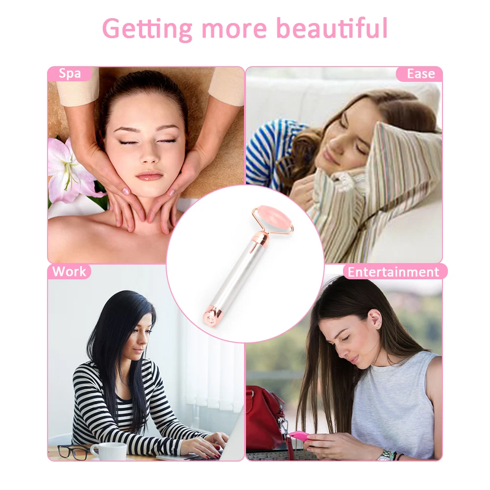 · The next generation of facial rolling: combines a controlled vibrating technology with genuine Rose Quartz stone.