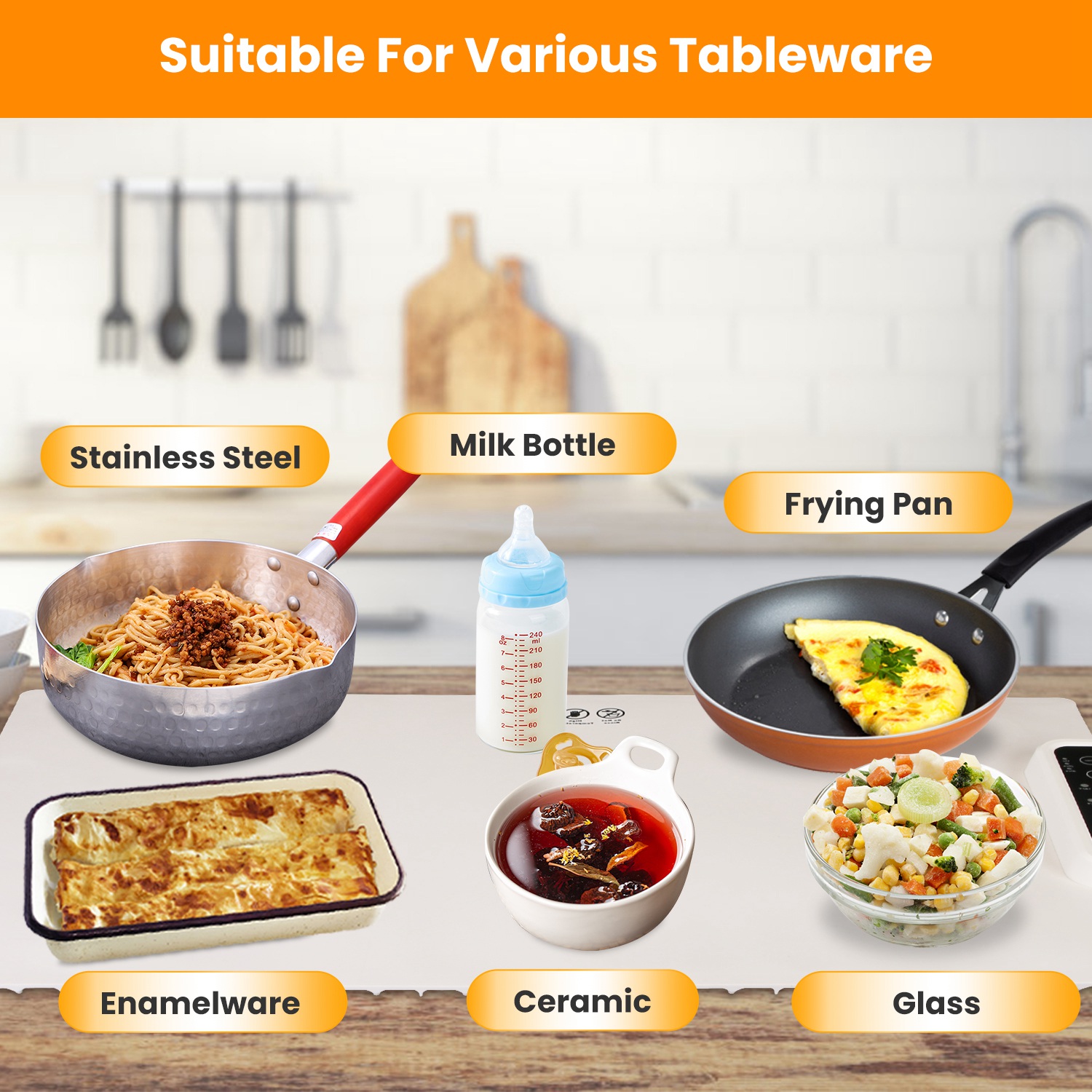 *Wide Application*:This smart heating tray is suitable for a various types of tableware,such as stainless steel,ceramic,milk bottle,enamelware,glass,frying pan etc.. The roll up heating pad for food can also warm up facial masks,thaw iced meat,ferment dough and keep the dinner warm for who comes home late.