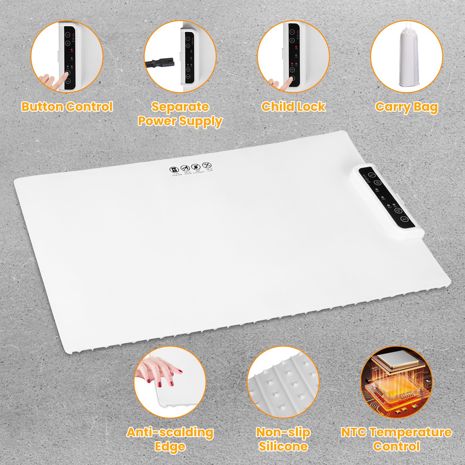 *Enlarged Heating Area*:Measured 25.98x15.35in in size and made of silicone and graphene,our electric warming tray not only ensures quick and even heat distribution,but also is able to heat 4-6 dishes at a time. Perfect for large family gatherings,festive celebrations,or social dining with friends.