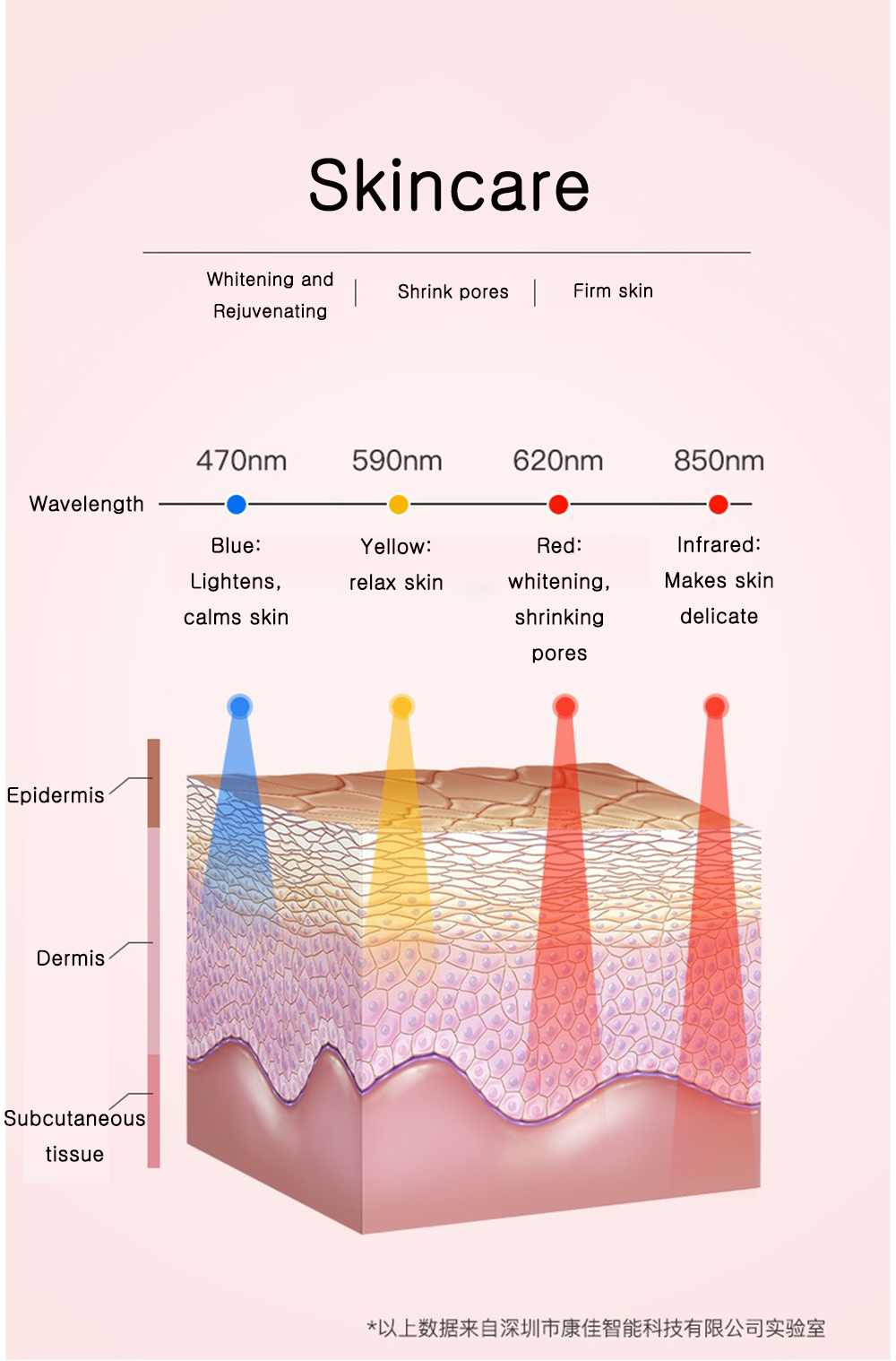 2. Photon maintenance, four wavelengths of light irradiation: red (discoloration and calmness), blue (relax skin, clean up trash), yellow (whiten and stretch skin, shrink pores), infrared (delicate skin) to meet Different needs.