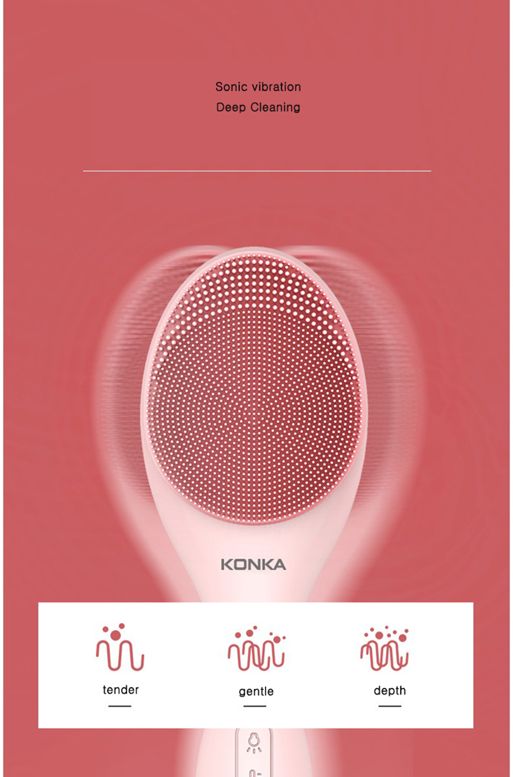 7. Multifunctional, Konka facial cleanser = beauty instrument + facial cleanser + sensor. After cleaning, use vibration and heat compress mode to effectively promote the introduction and absorption of skin care products