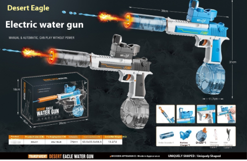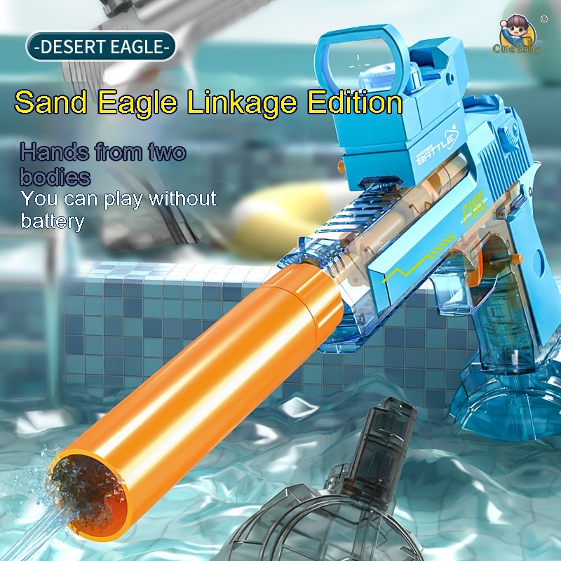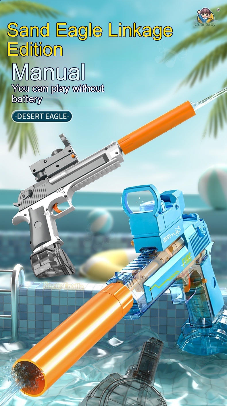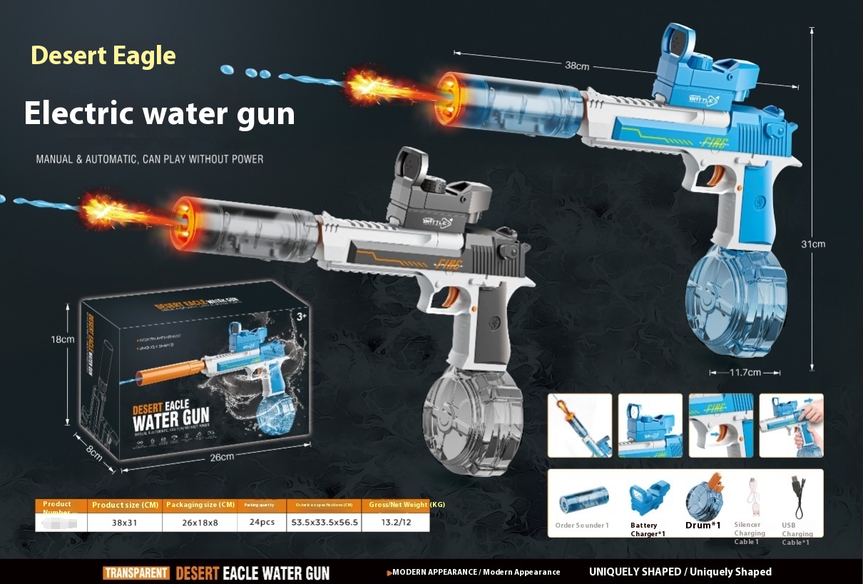 Blue and White: Linked Desert Eagle Electric Water Gun + Transparent Flame/Silencer