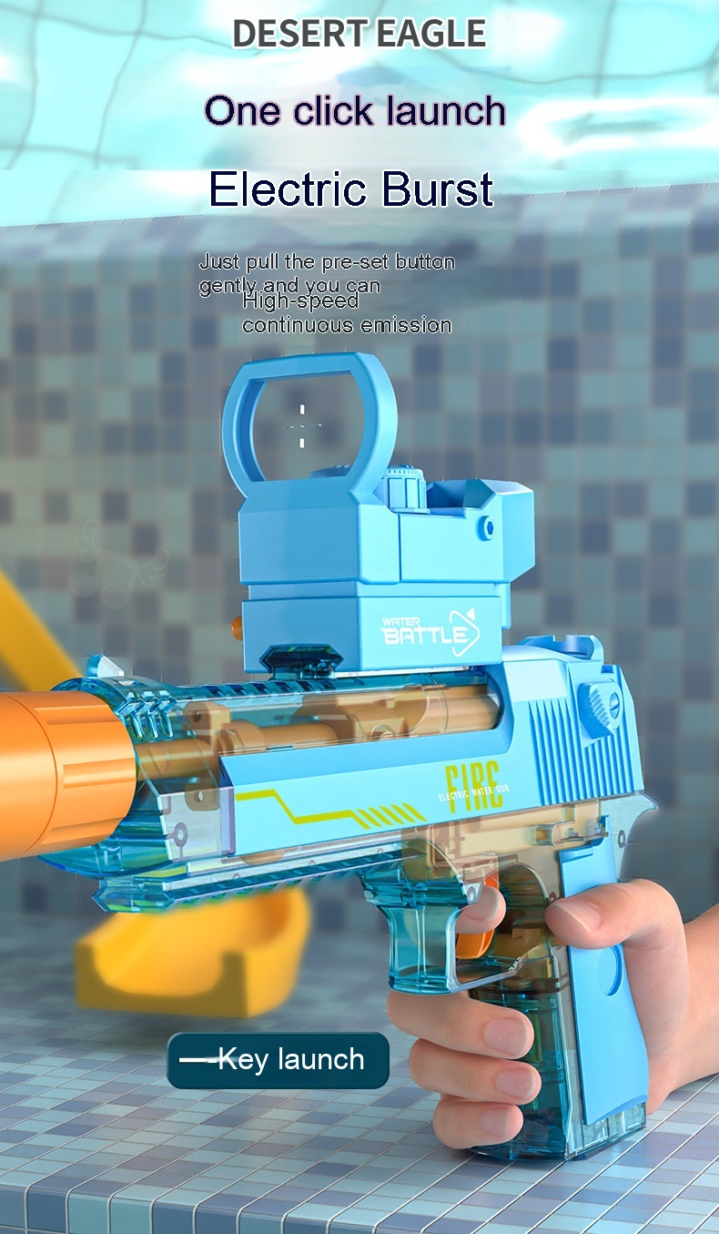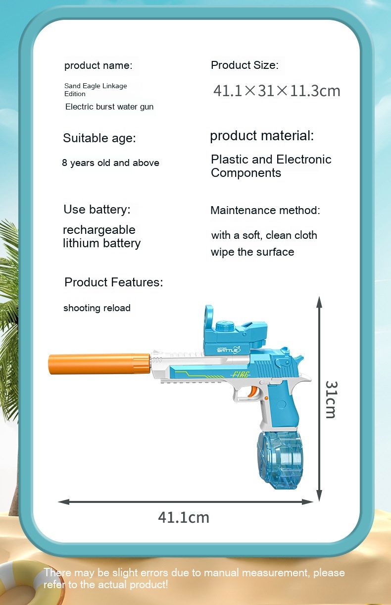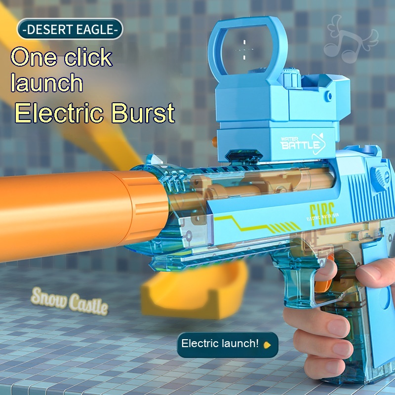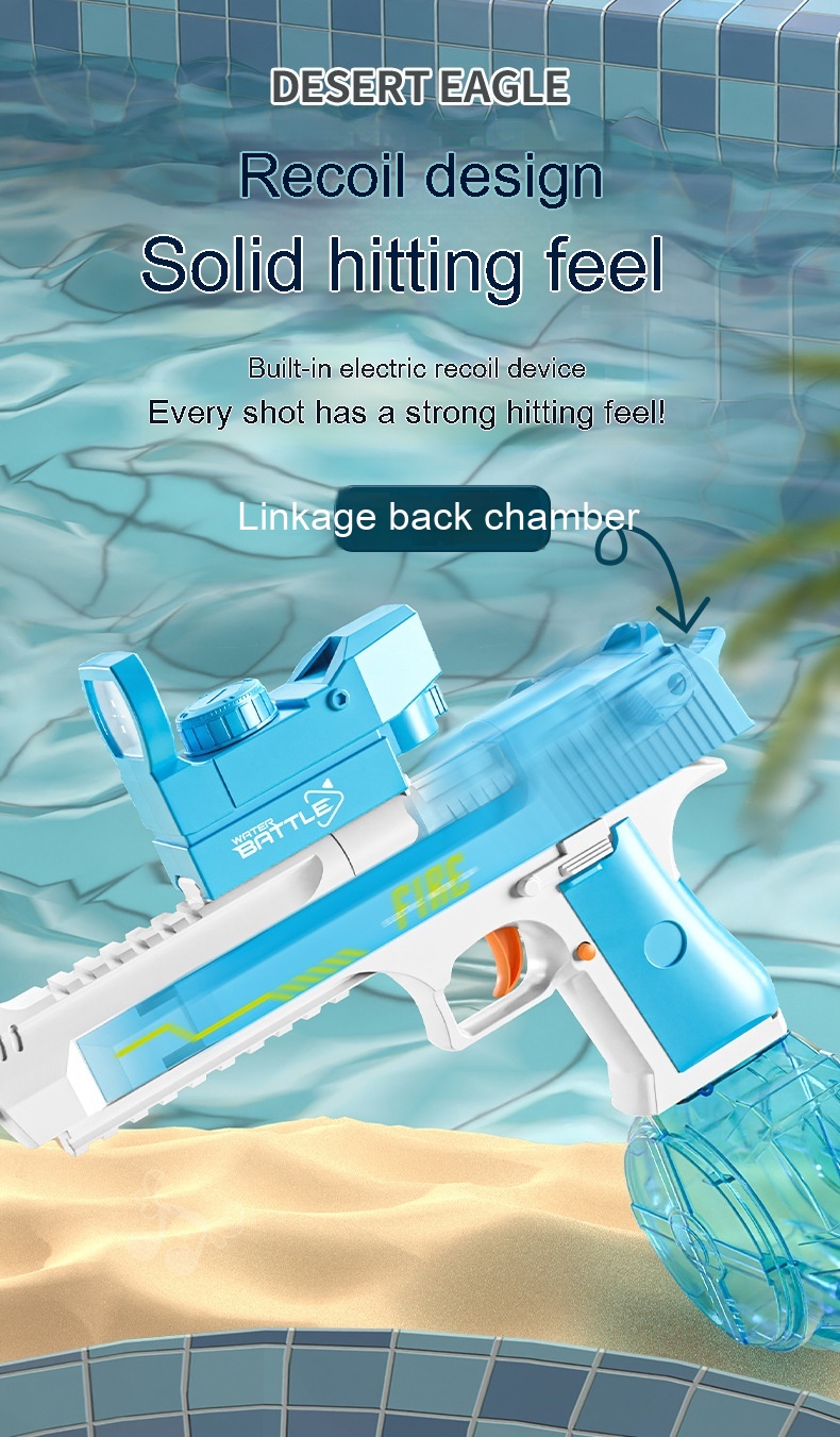 Blue and White: Linked Desert Eagle Electric Water Gun + Transparent Flame/Silencer