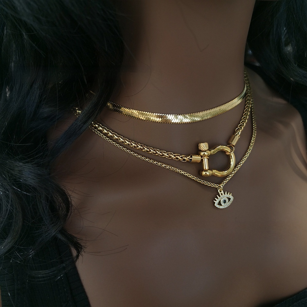 Color: fully Golden, all steel color, gold necklace steel color buckle, steel color chain gold buckle, gold eye, Silver Eye