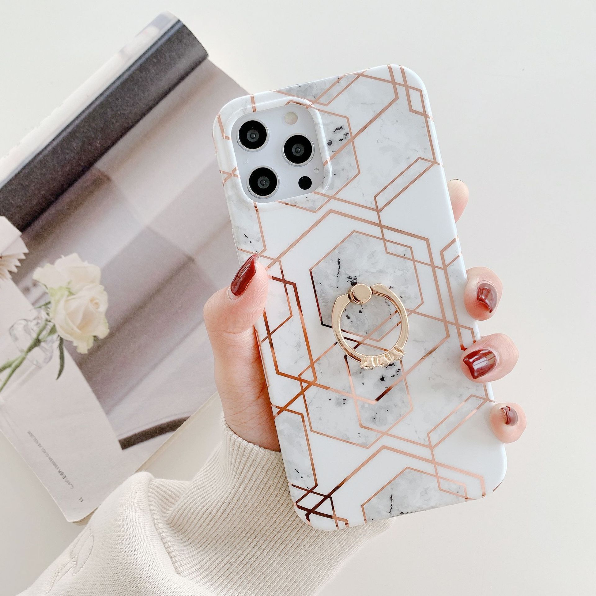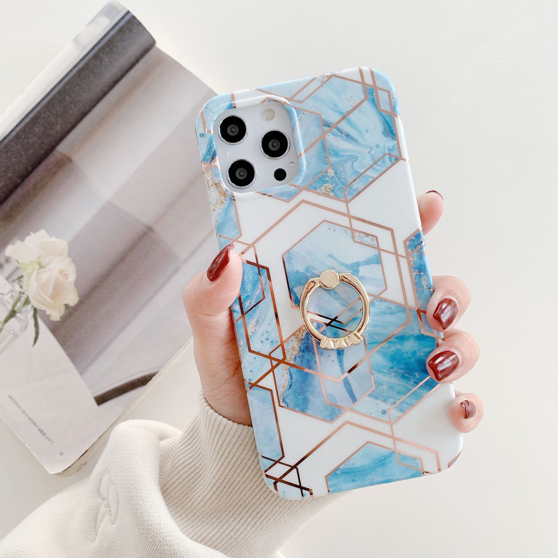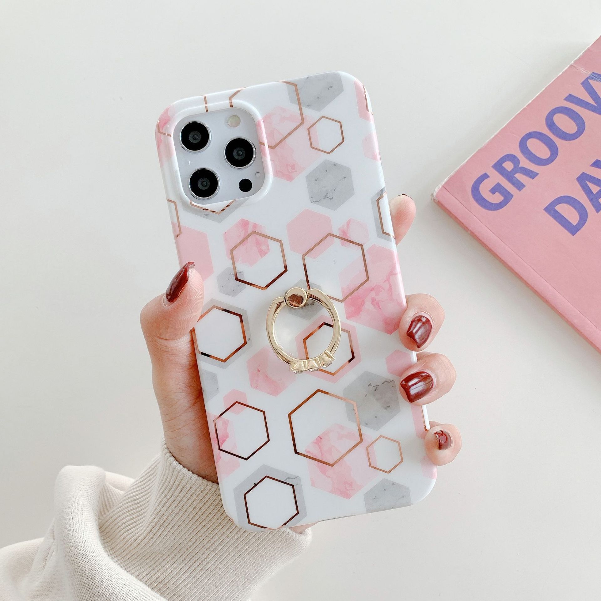 Color: gray and white hexagonal splicing ring buckle, blue and white hexagonal splicing ring buckle, purple gray and white hexagonal splicing ring buckle, pink and white hexagonal splicing ring buckle, pink gray and white hexagonal splicing ring buckle