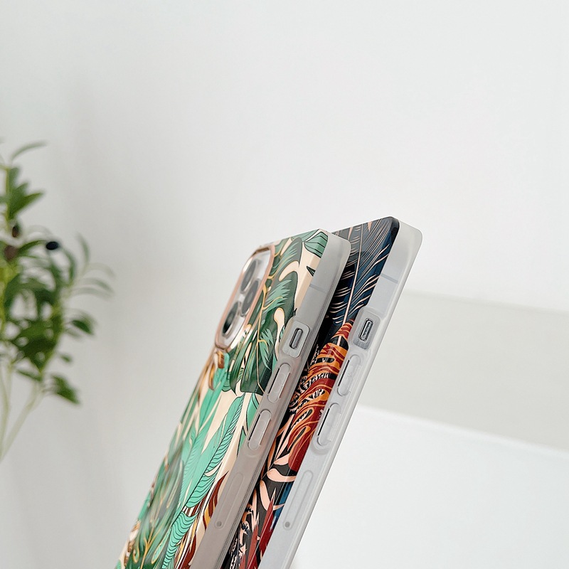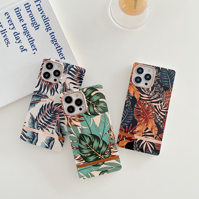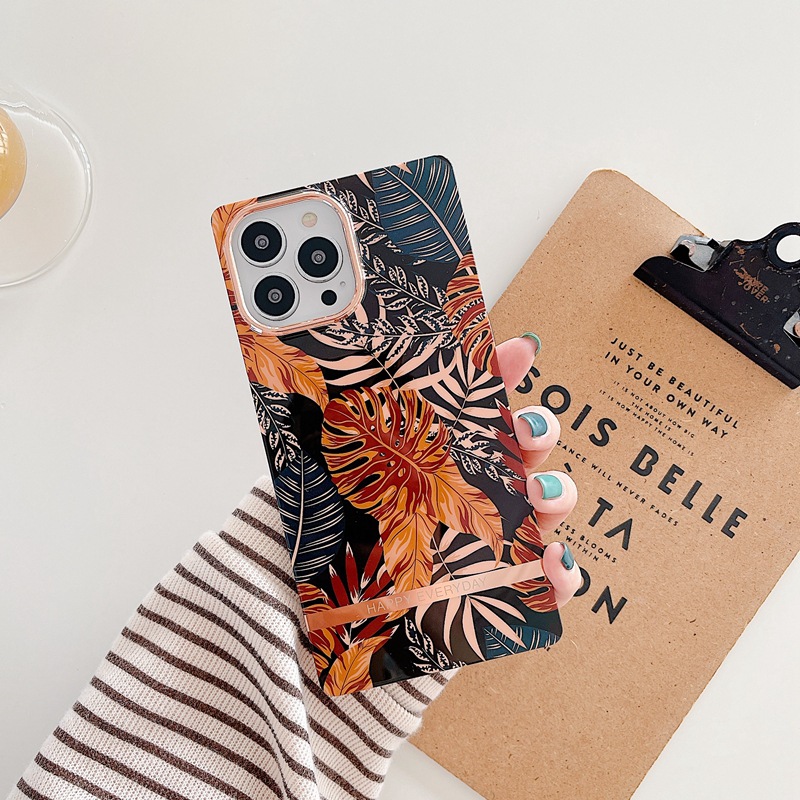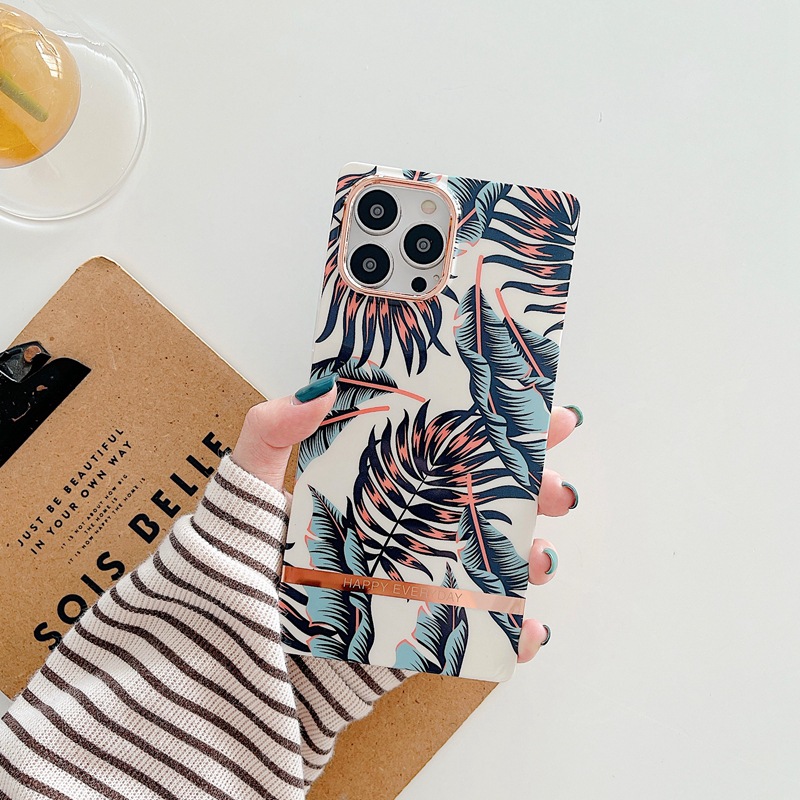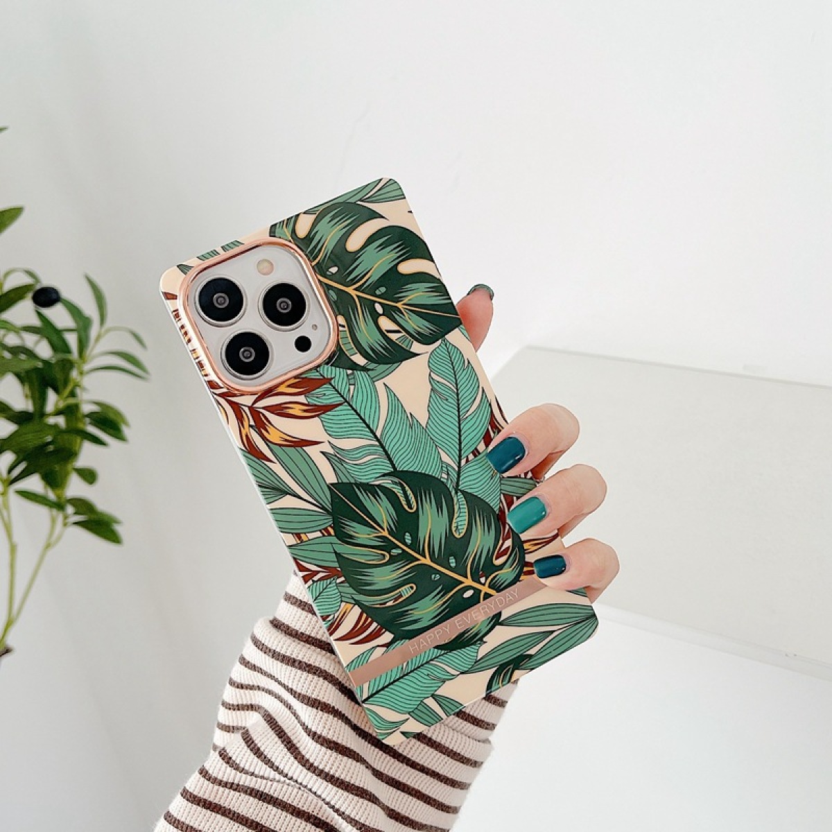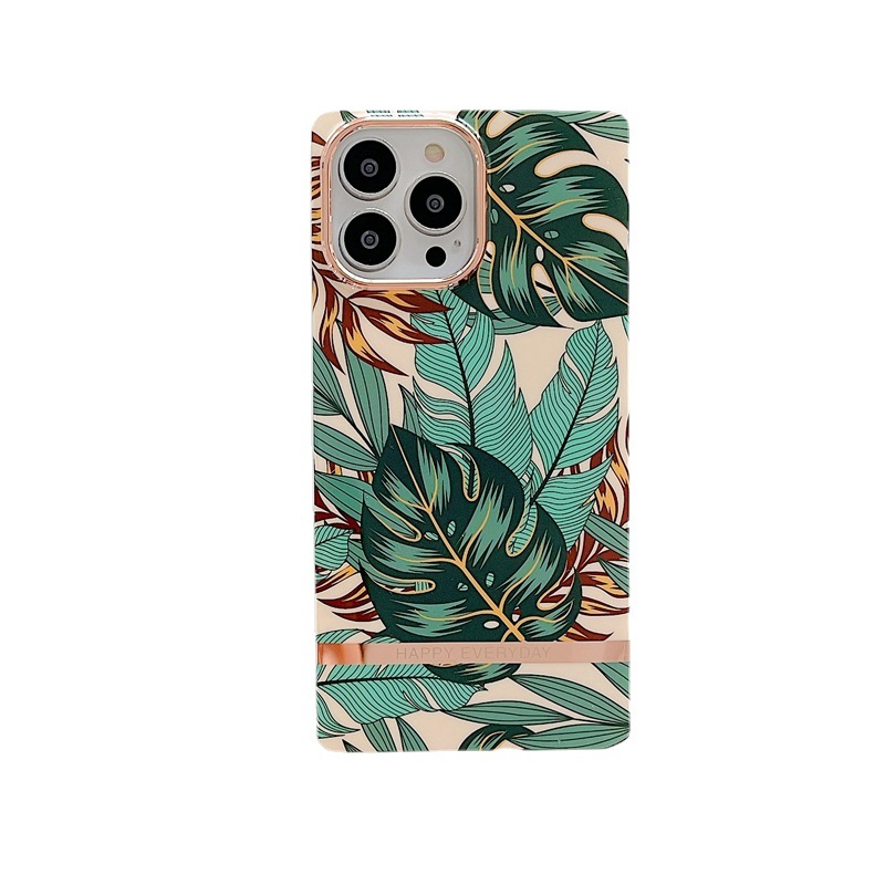 Electroplating Gold Edge Square Literary Banana Leaf Mobile Phone Case