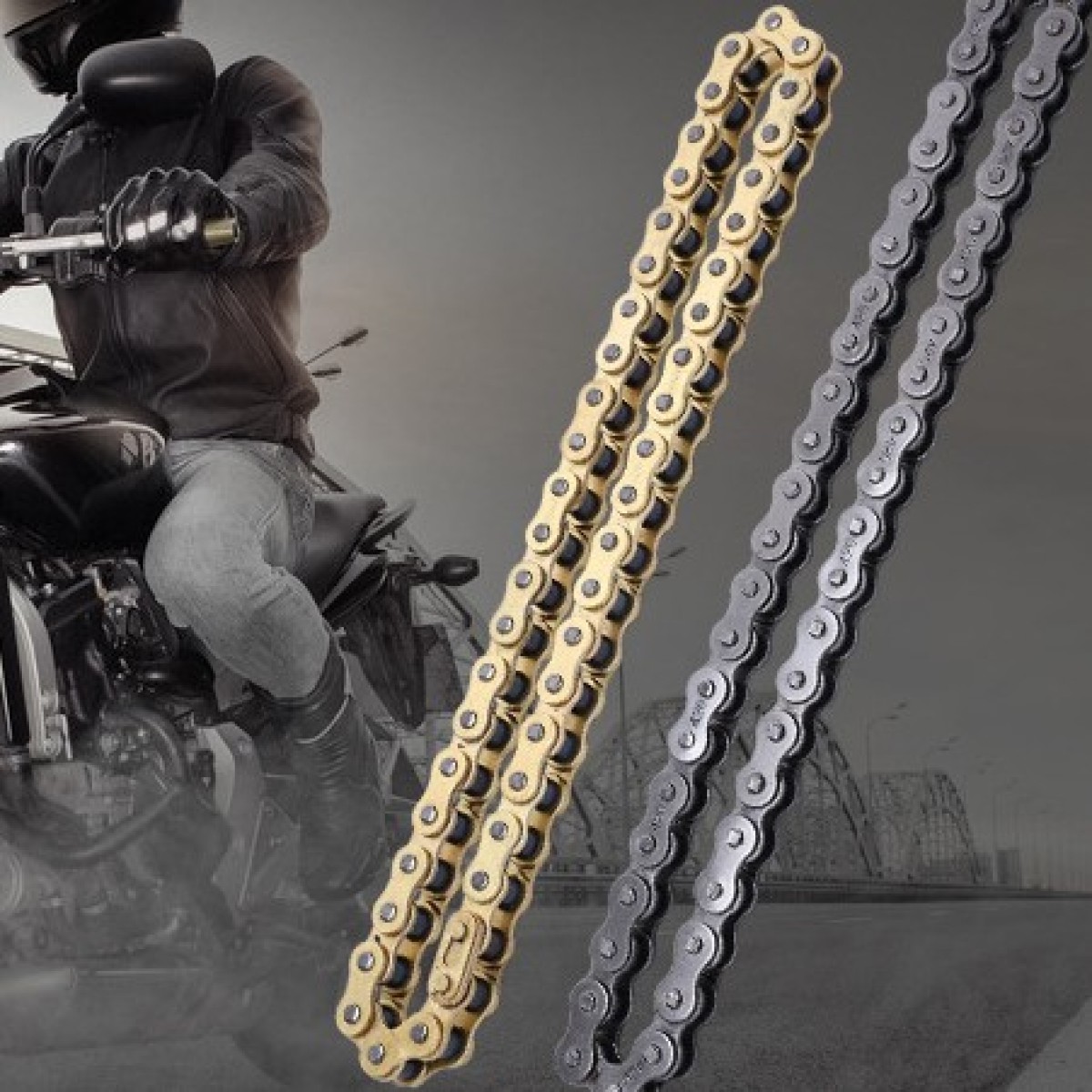 Product information:Material: metalSurface treatment: electroplatingType: 520HV-120LPacking list:Motorcycle chain *1