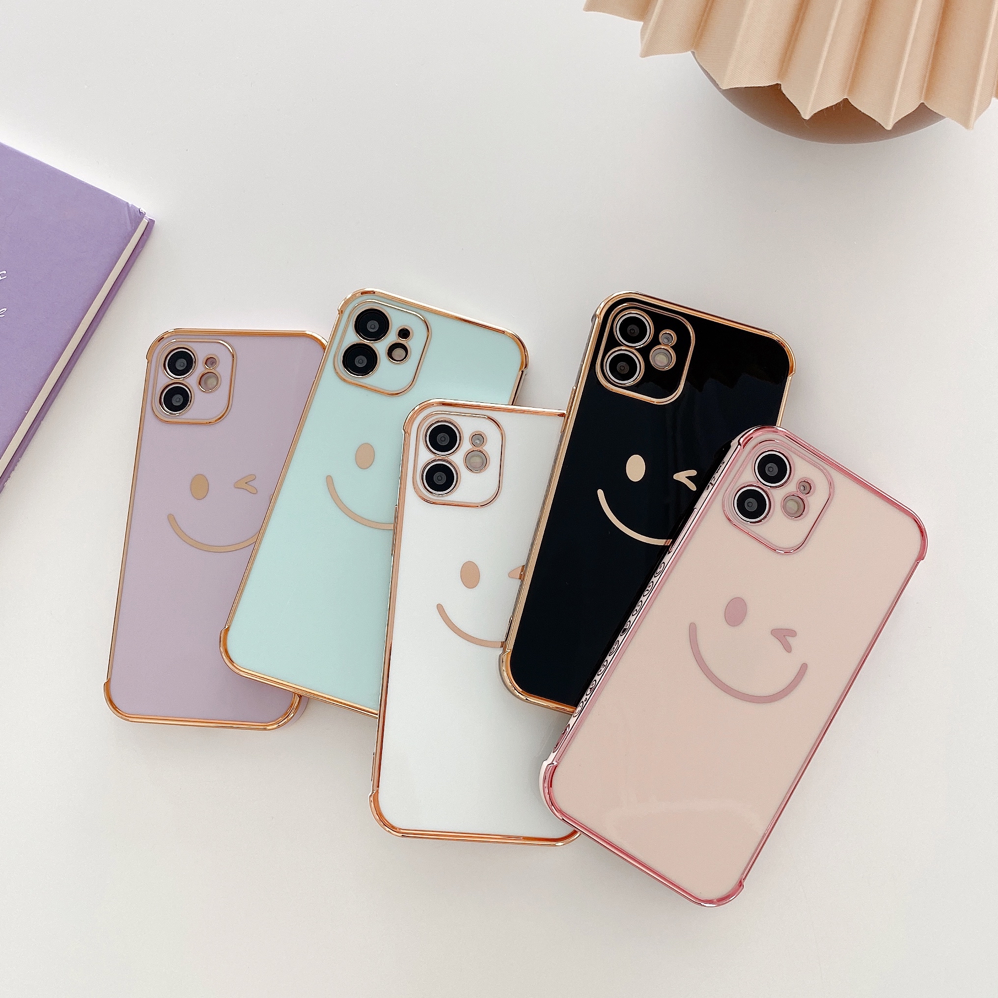 Color: purple electroplating side smiley, matcha green electroplating side smiley, pink electroplating side smiley, black electroplating side smiley, white electroplating side smiley