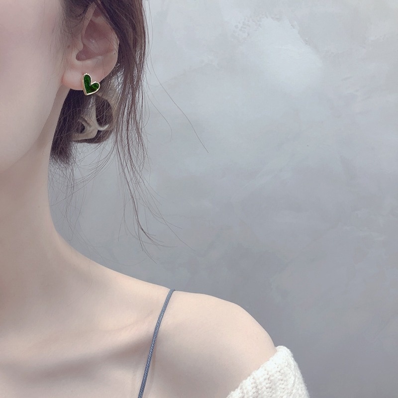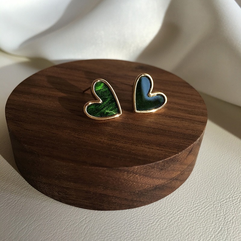 Elegance Retro High-grade Dark Green Love Female Earrings
