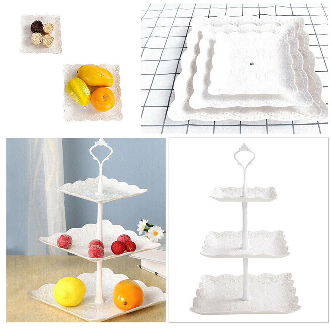Elegant 3-Tier Square Cake Stand Set - 2Pcs Plastic Dessert Tower for Tea Parties and Weddings Office & School Supplies