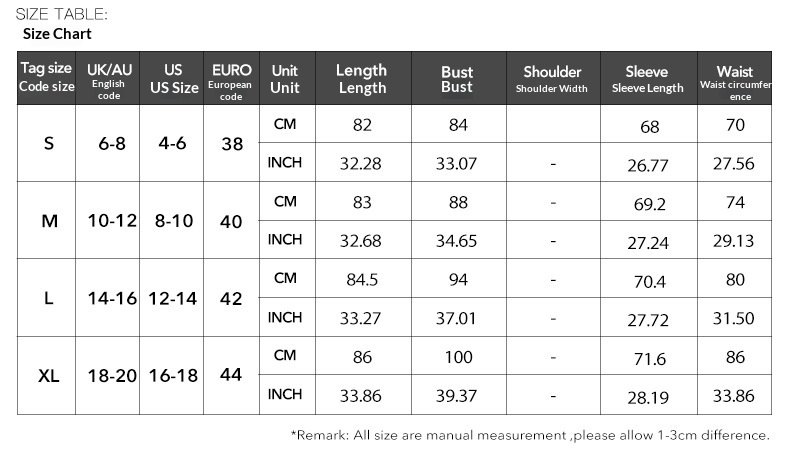 1. Asian sizes are 1 to 2 sizes smaller than European and American people. Choose the larger size if your size between two sizes. Please allow 2-3cm differences due to manual measurement. 2. Please check the size chart carefully before you buy the item, if you don't know how to choose size, please contact our customer service. 3.As you know, the different computers display colors differently, the color of the actual item may vary slightly from the following images.