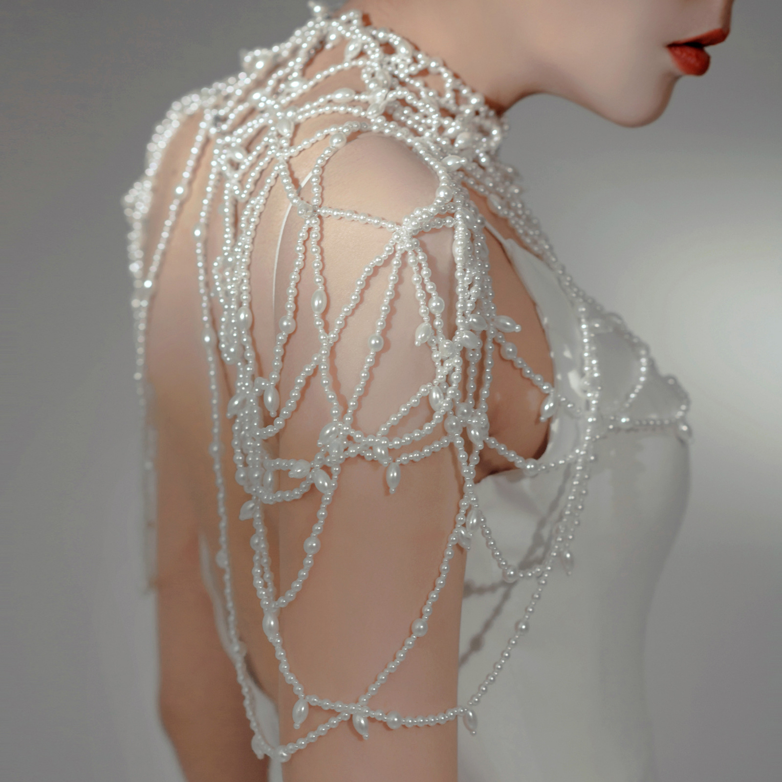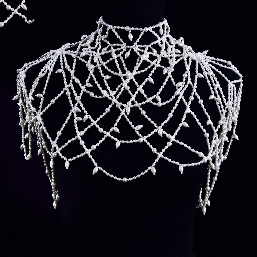 Material: hand-beaded pearl cloak