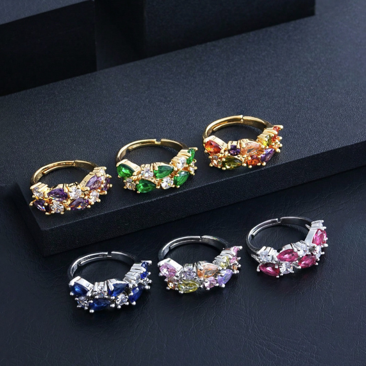 Color: purple and white zircon split ring (gold), green and white zircon split ring (gold), colorful zircon split ring (gold), Rose and White zircon split ring (silver), blue and White zircon split ring (silver), color zircon split ring (Silver)