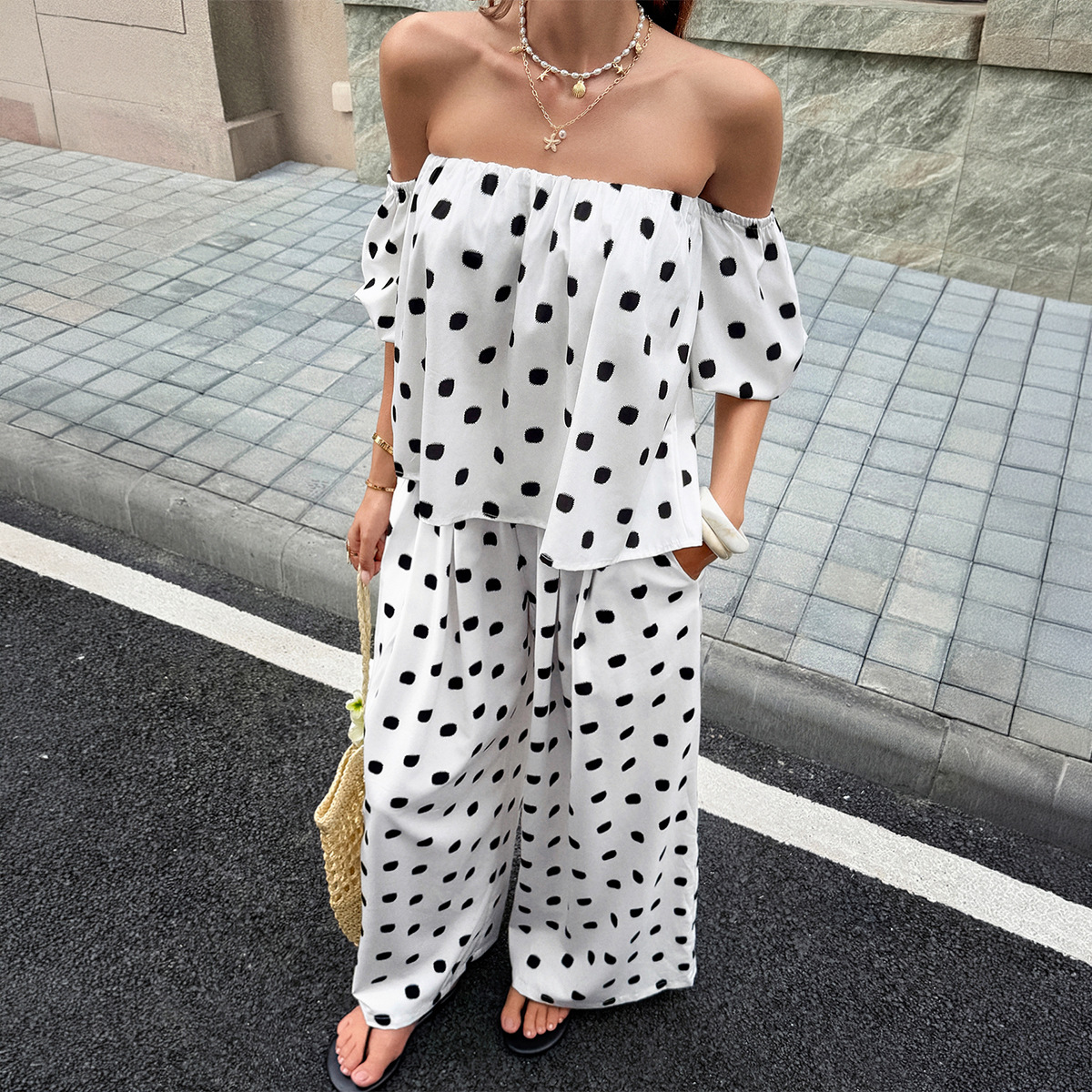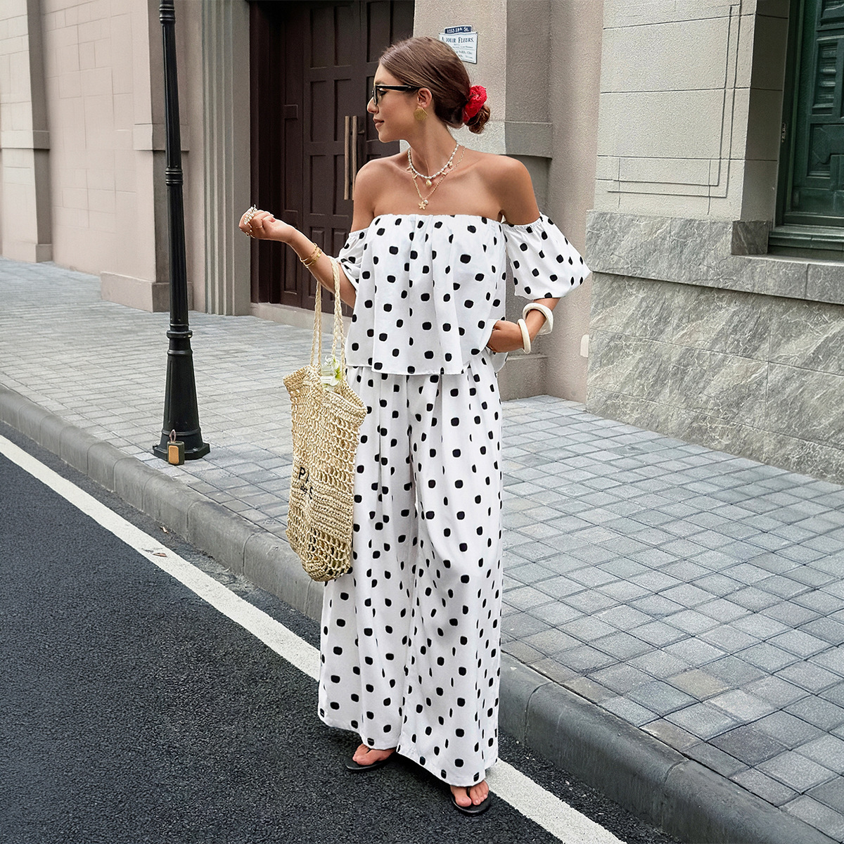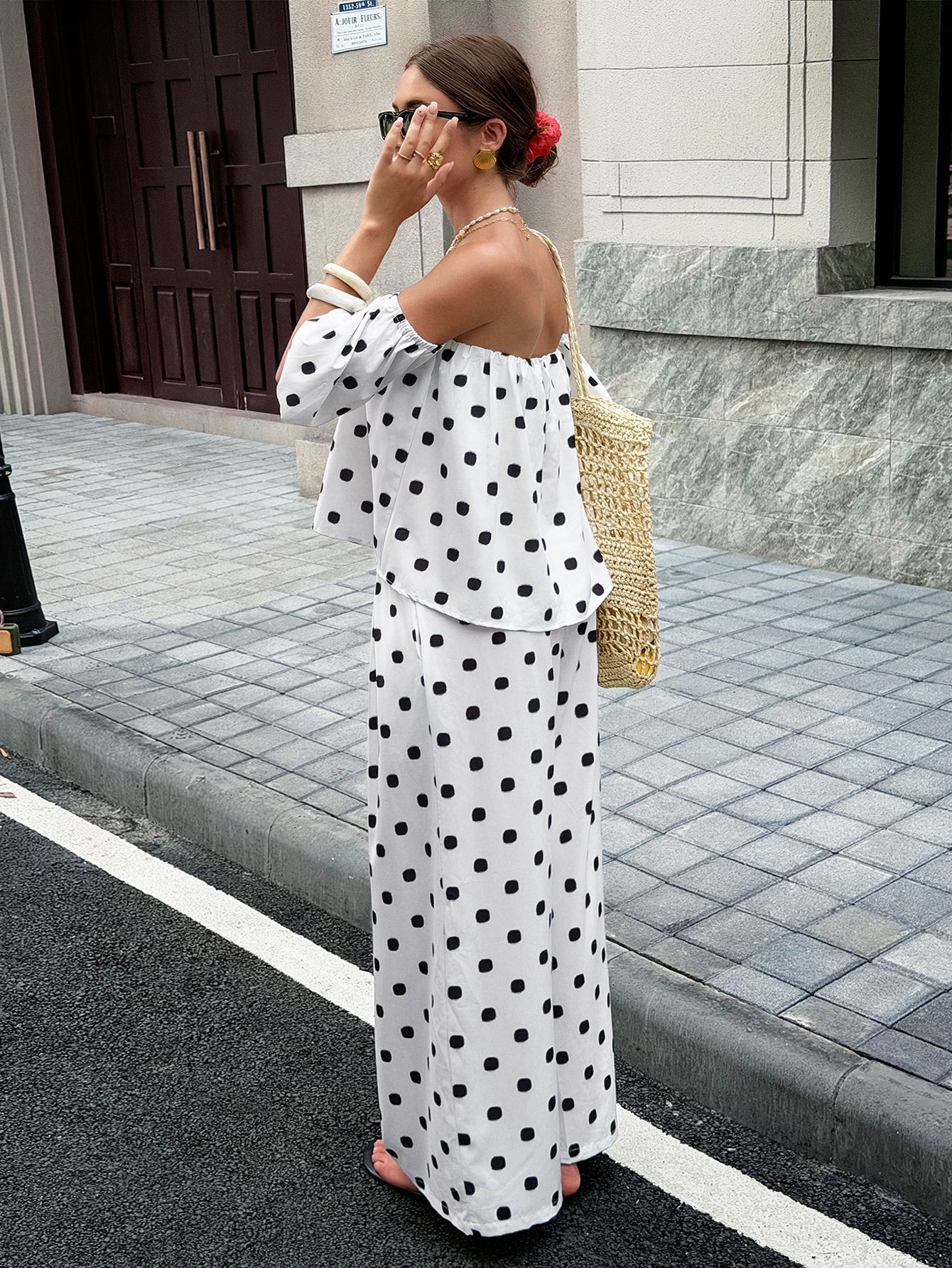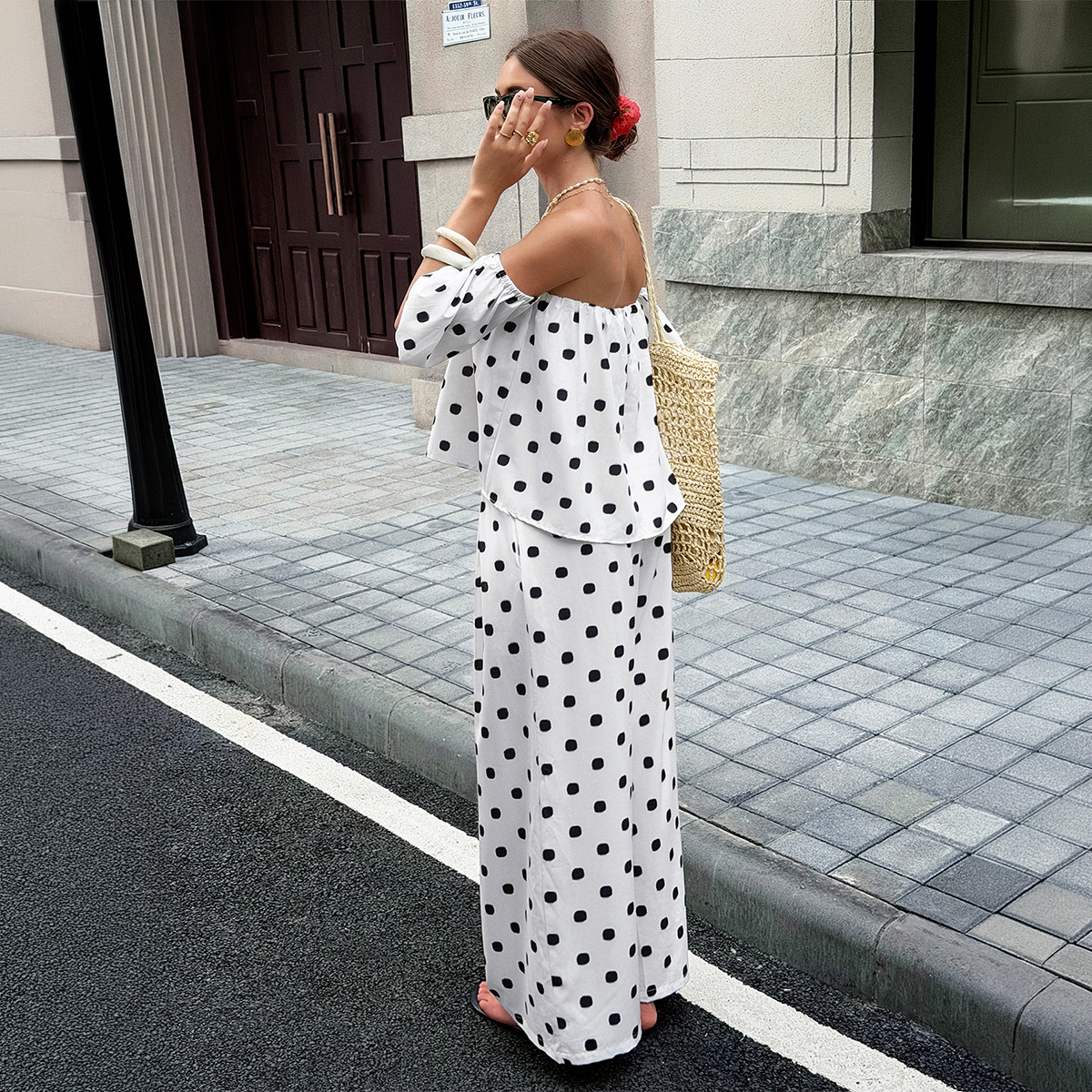 Elegant Casual Commute Fashion Polka-Dot Off-Shoulder Set