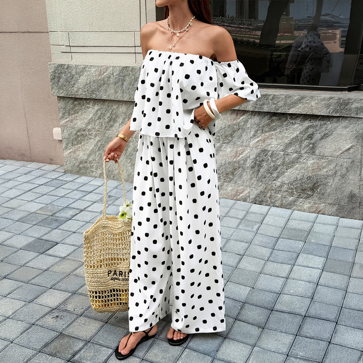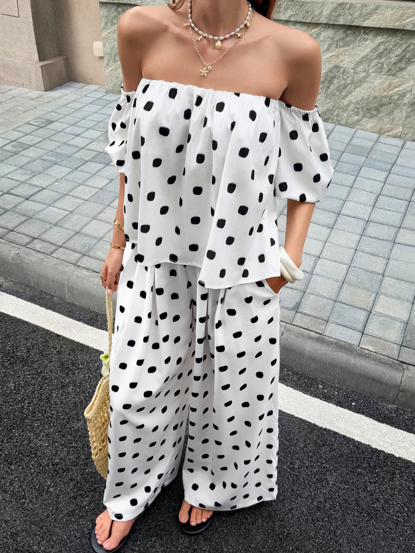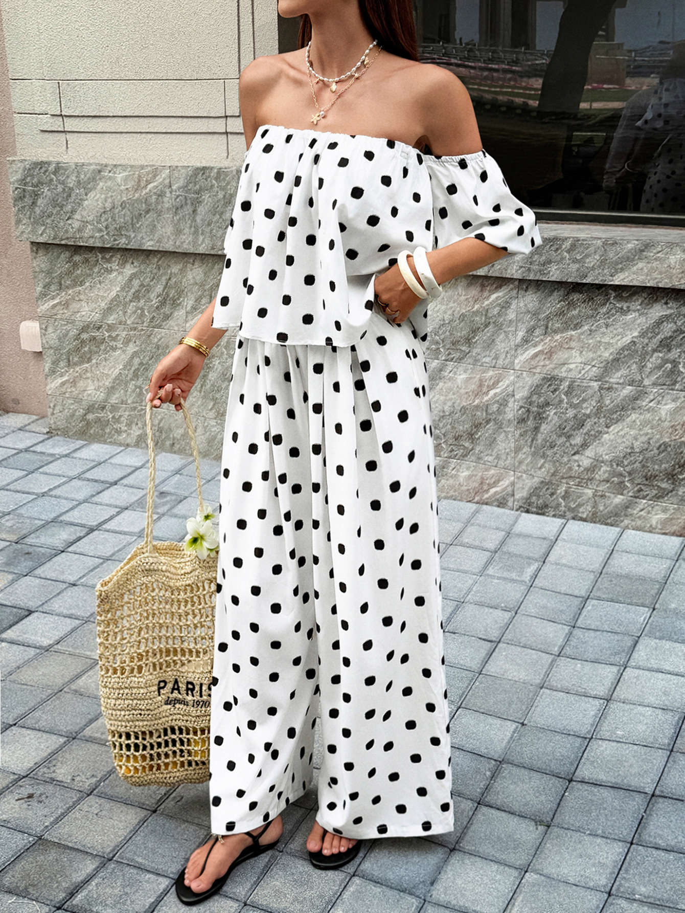 Elegant Casual Commute Fashion Polka-Dot Off-Shoulder Set