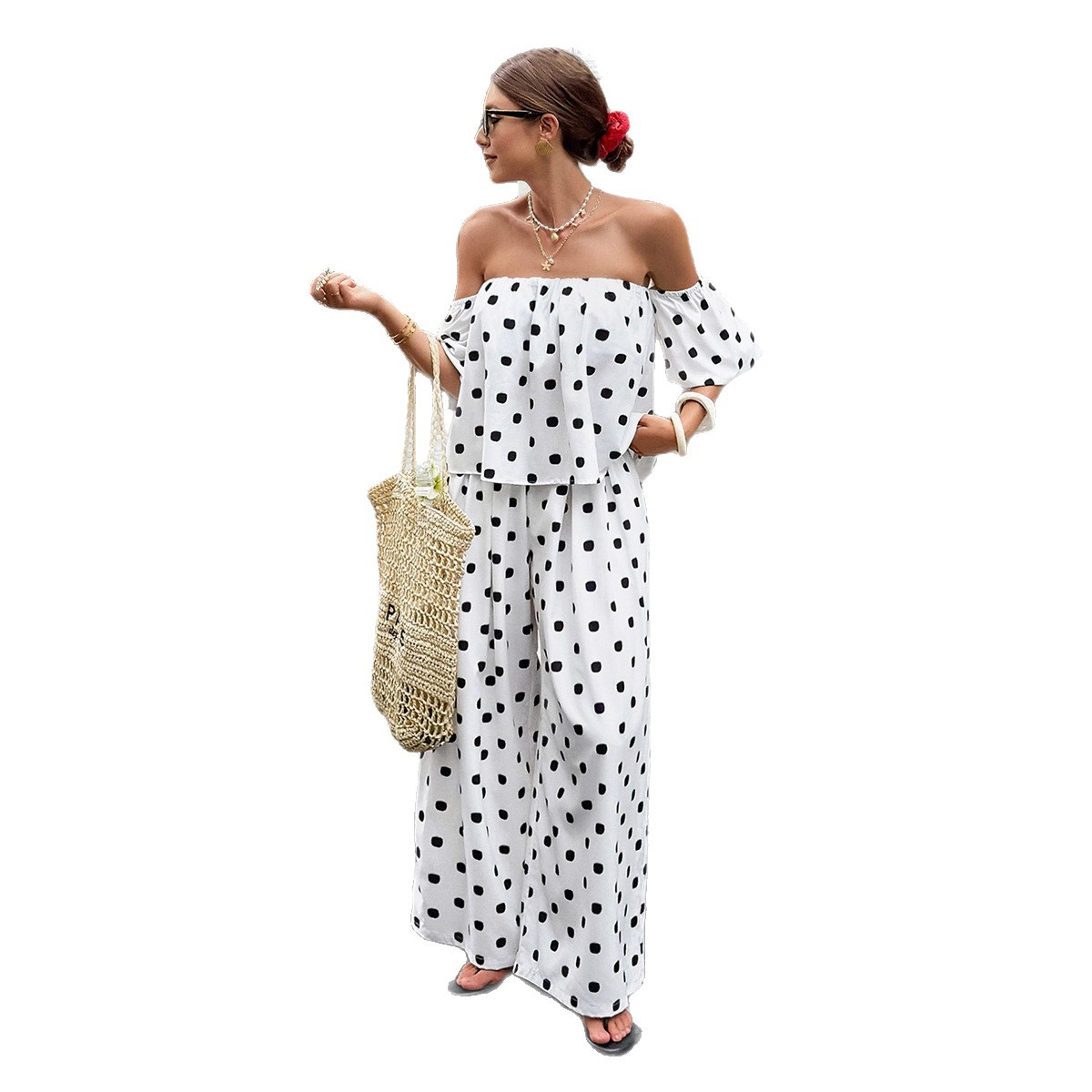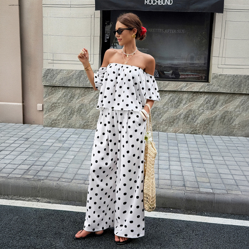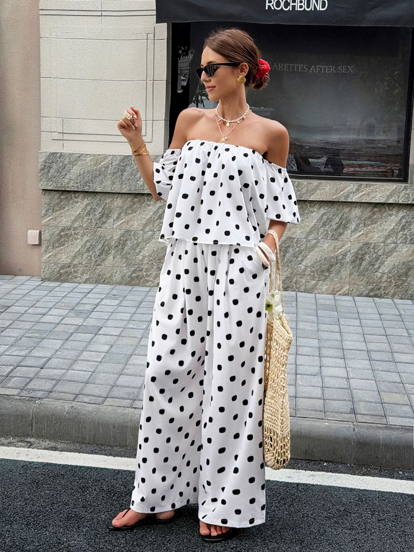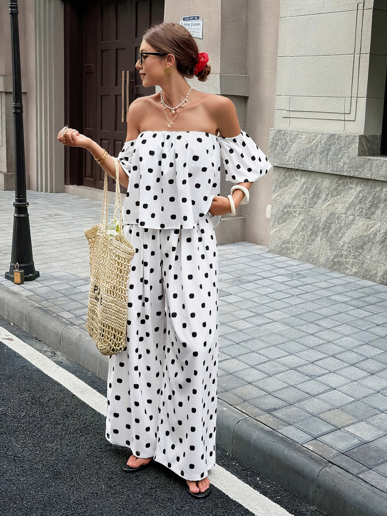 Elegant Casual Commute Fashion Polka-Dot Off-Shoulder Set
