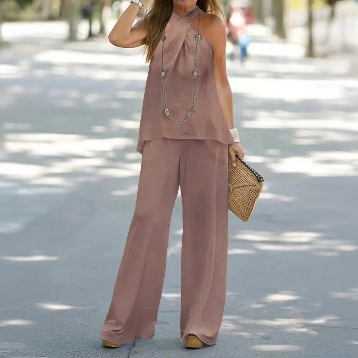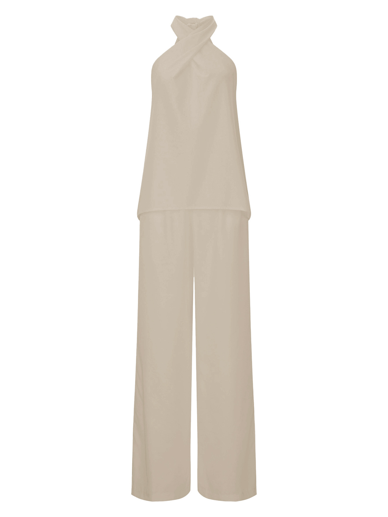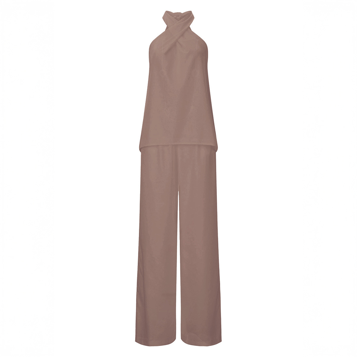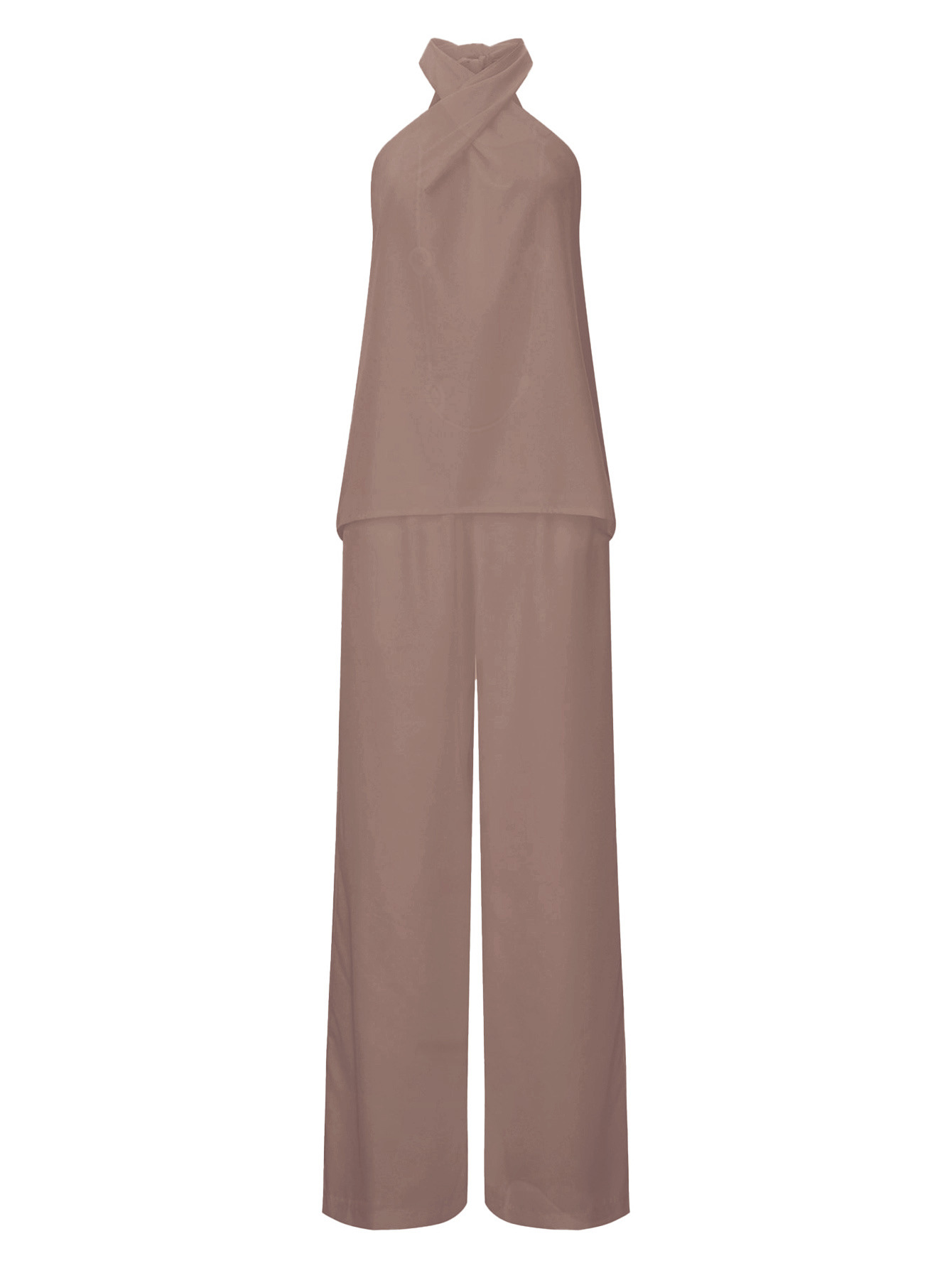 Elegant Commute Halterneck Wide-Leg Pants Suit For Women