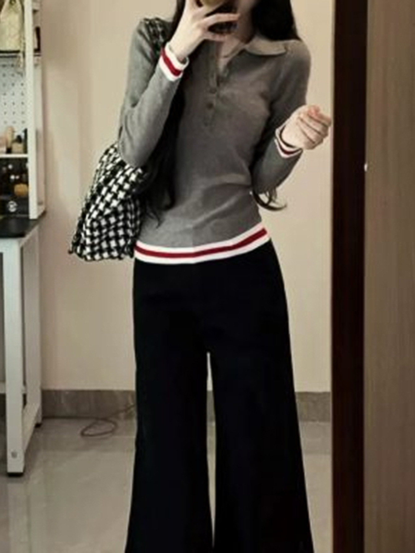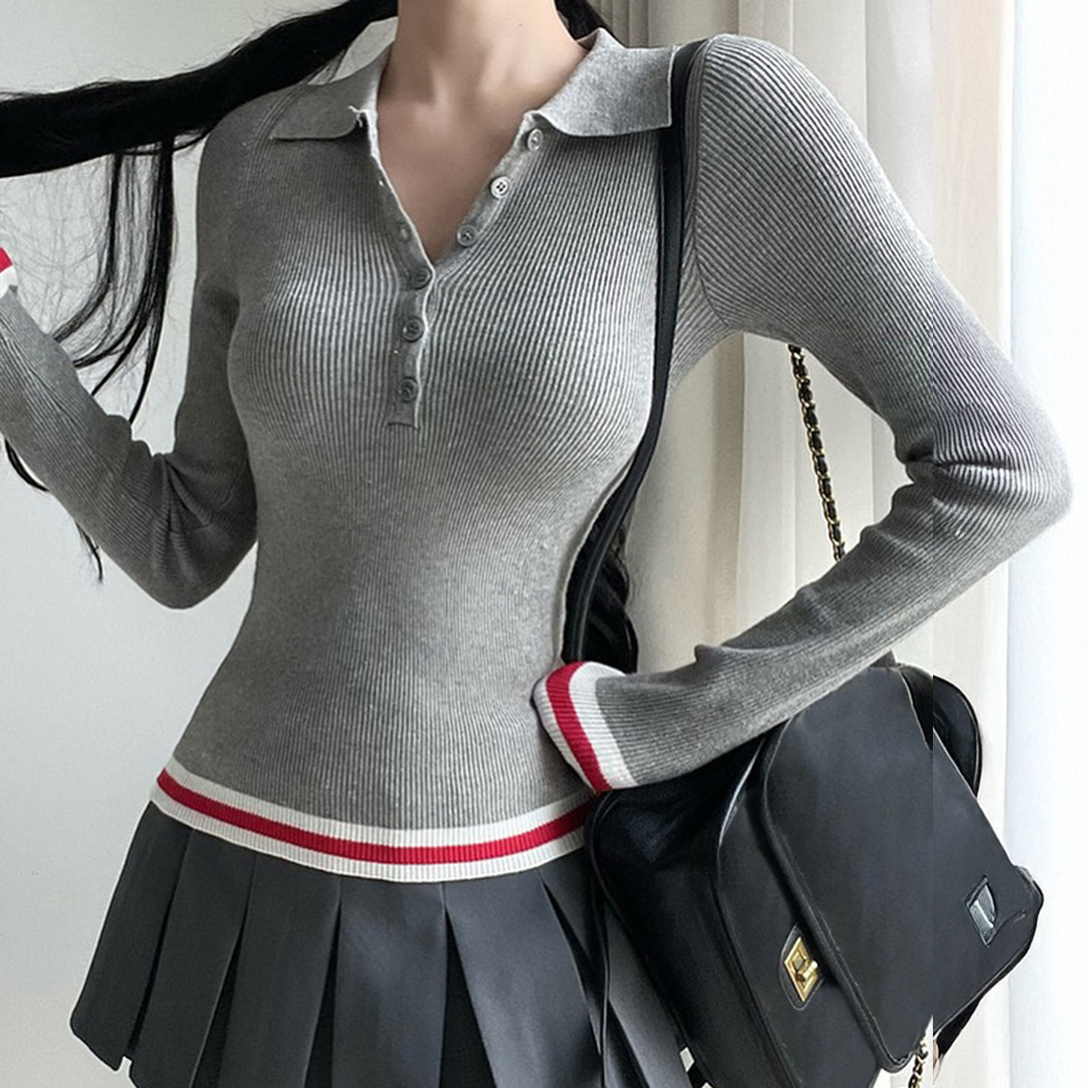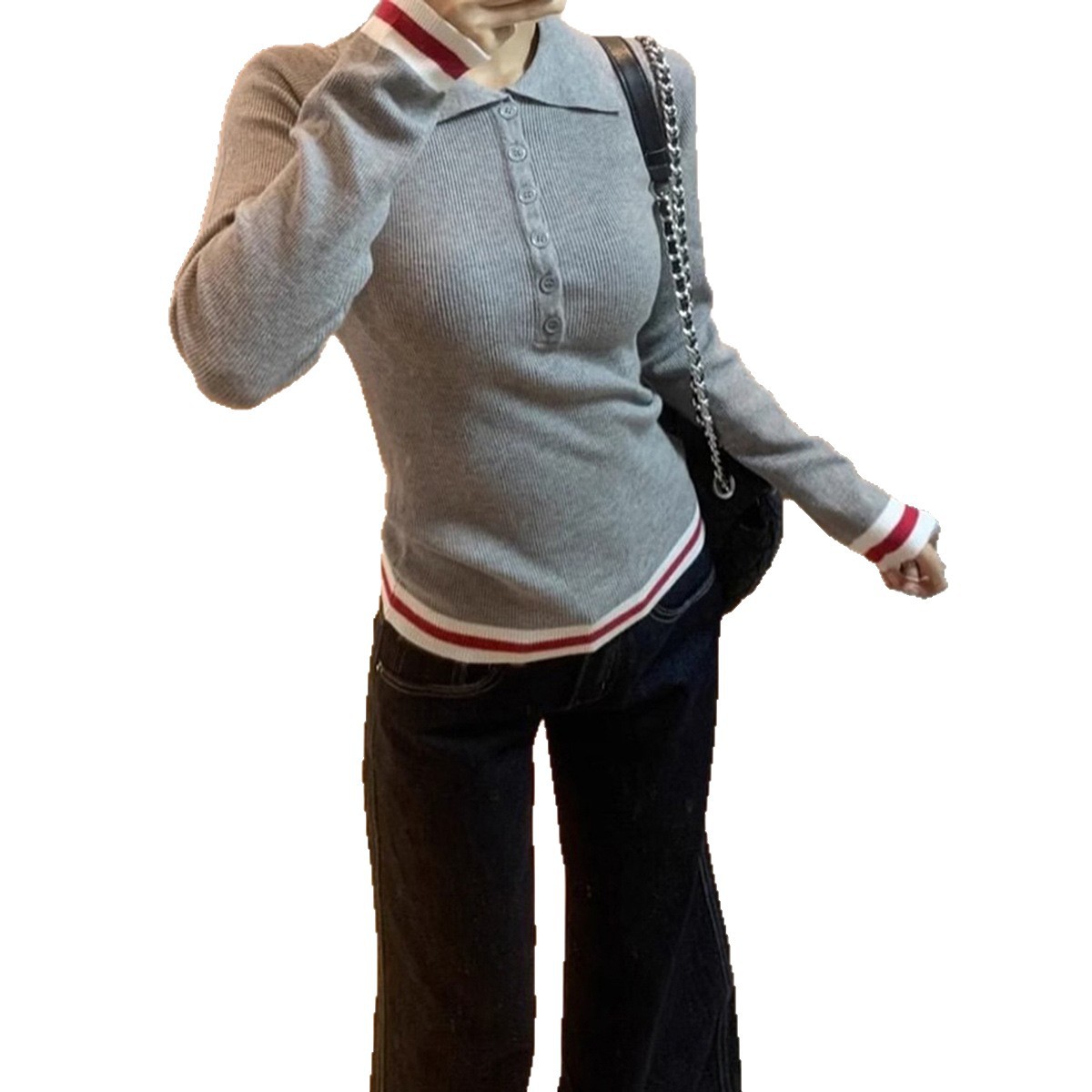 Elegant Commuter Lapel Long-Sleeve Knit Top