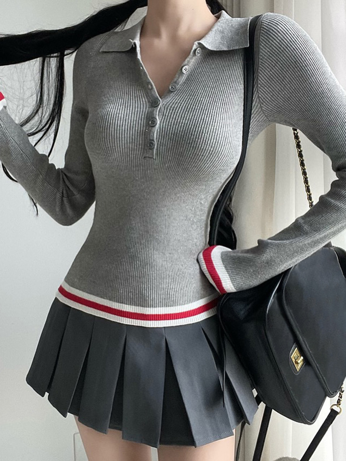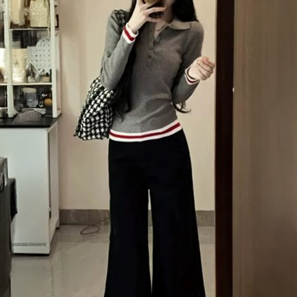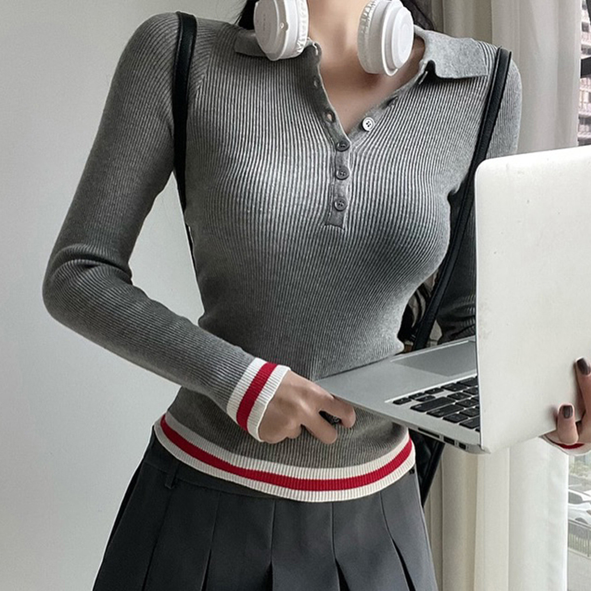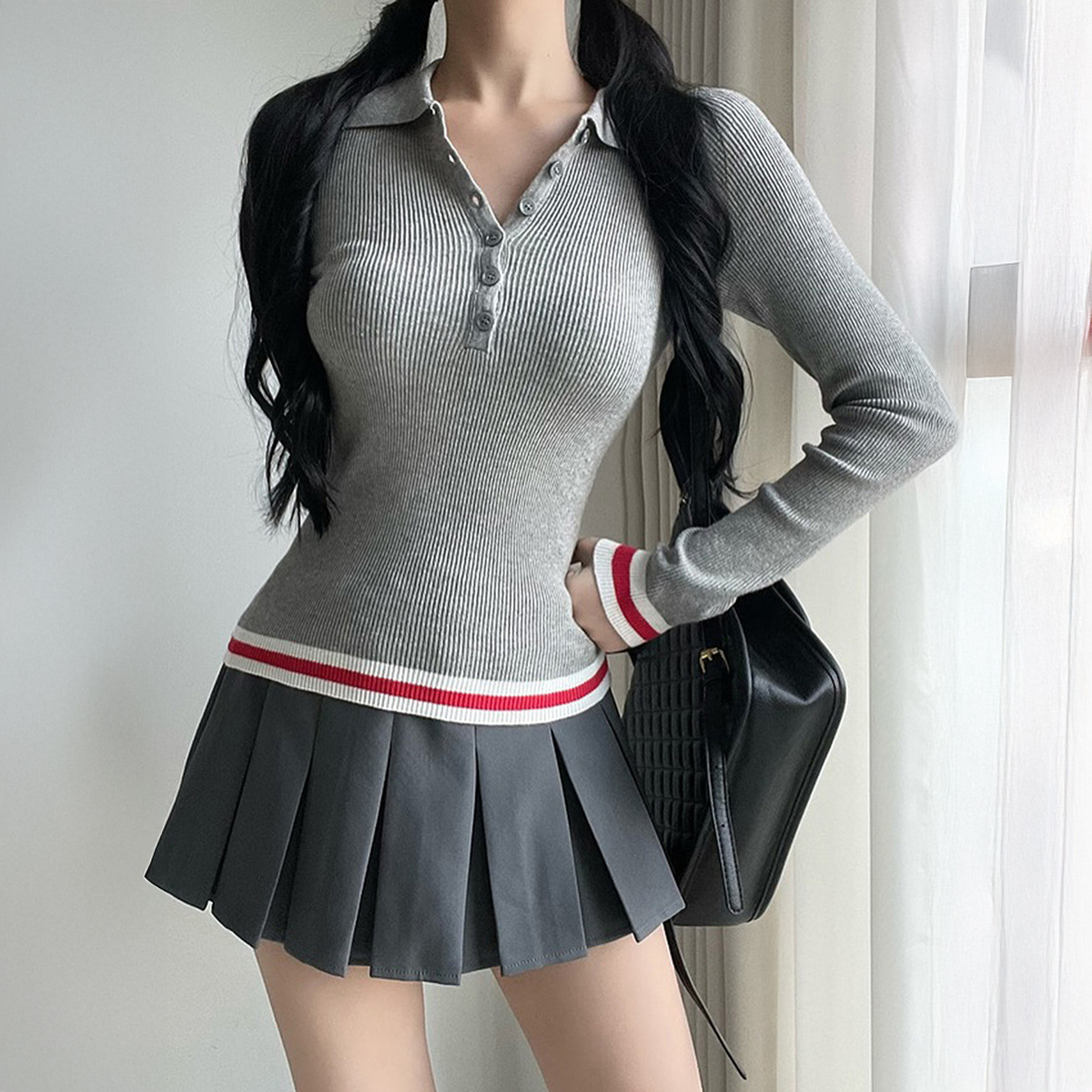 Elegant Commuter Lapel Long-Sleeve Knit Top