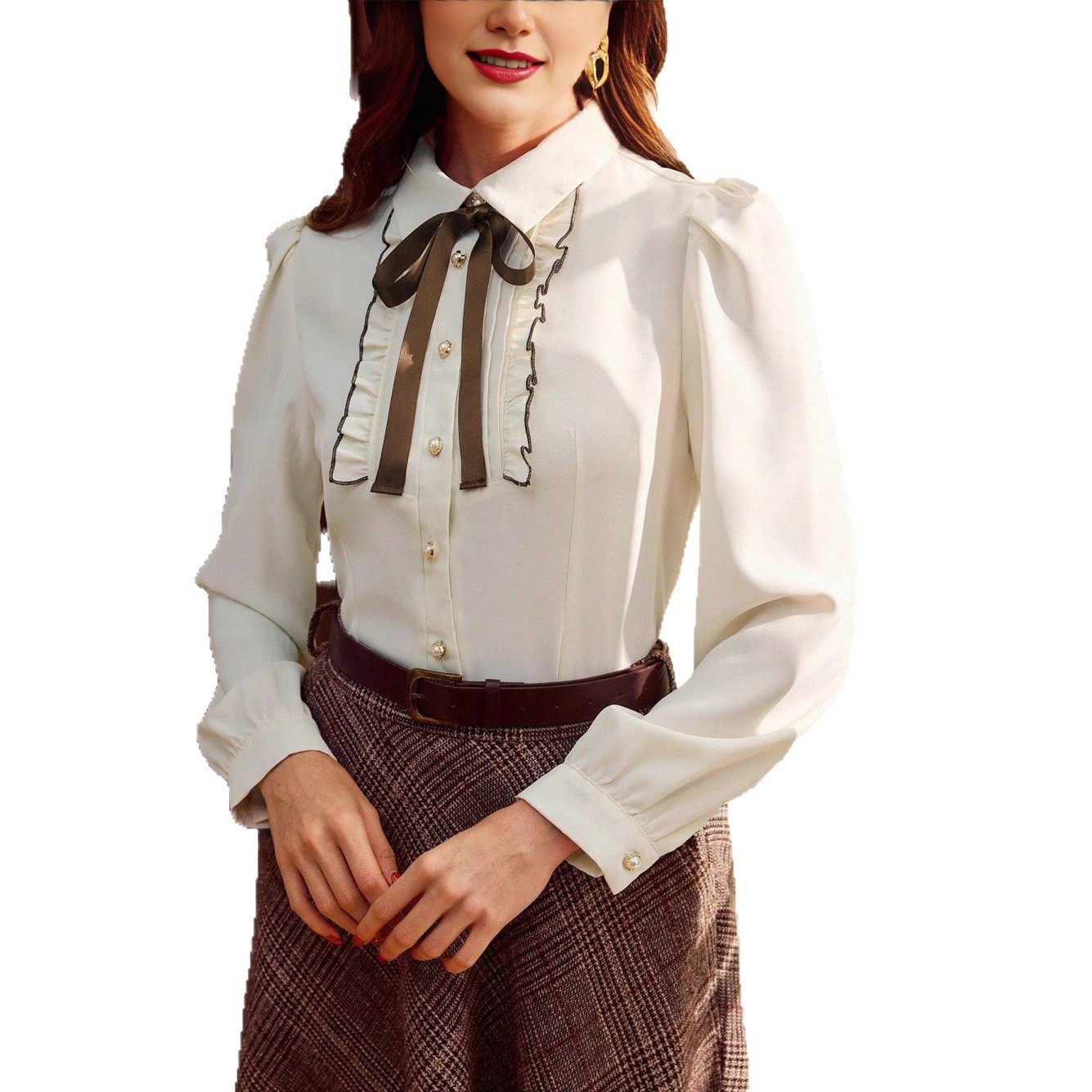 Elegant Contrast-Color Defined-Waist Shirt For Women