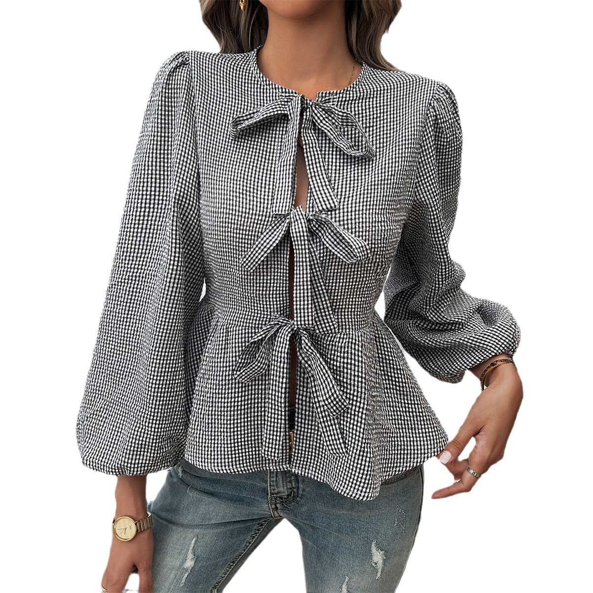 Elegant Design Contrast Color Tied Long Sleeves Shirt