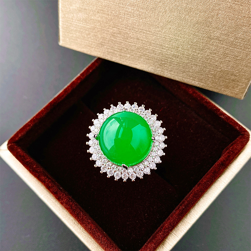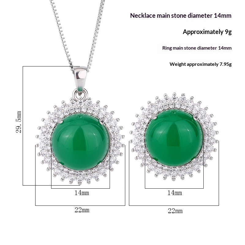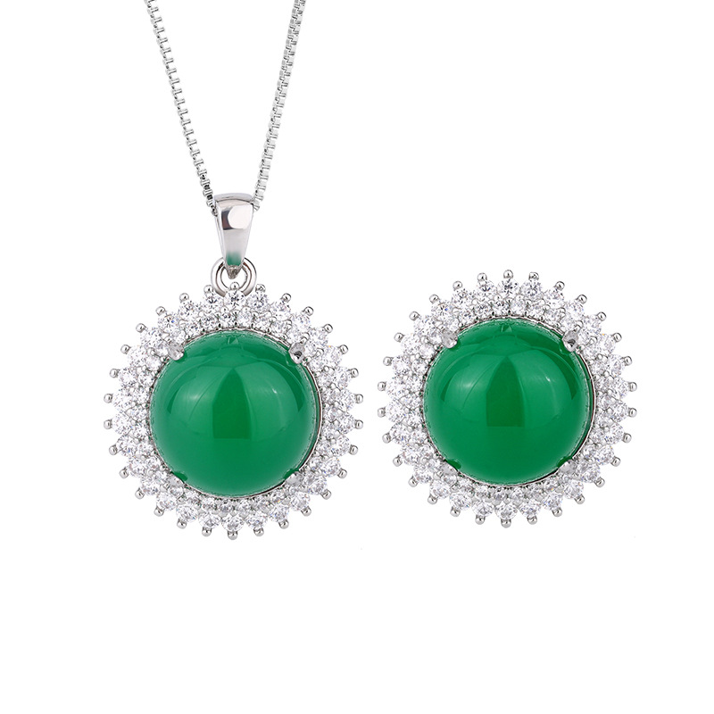 Elegant Fluorescent Round Chalcedony Set For Women Ring And Pendant
