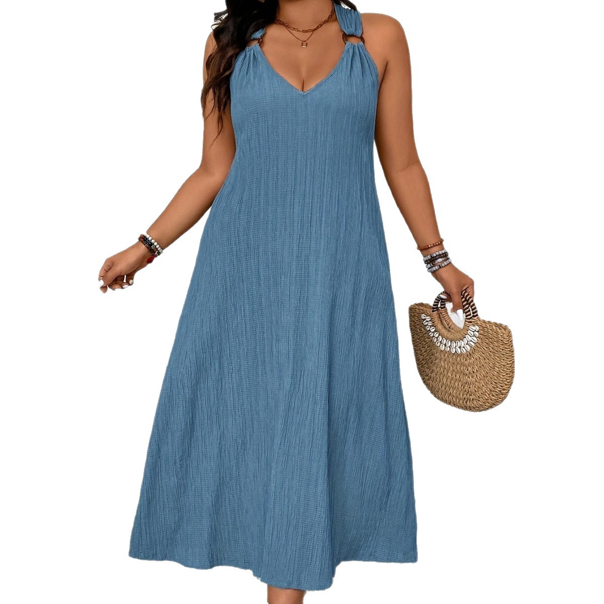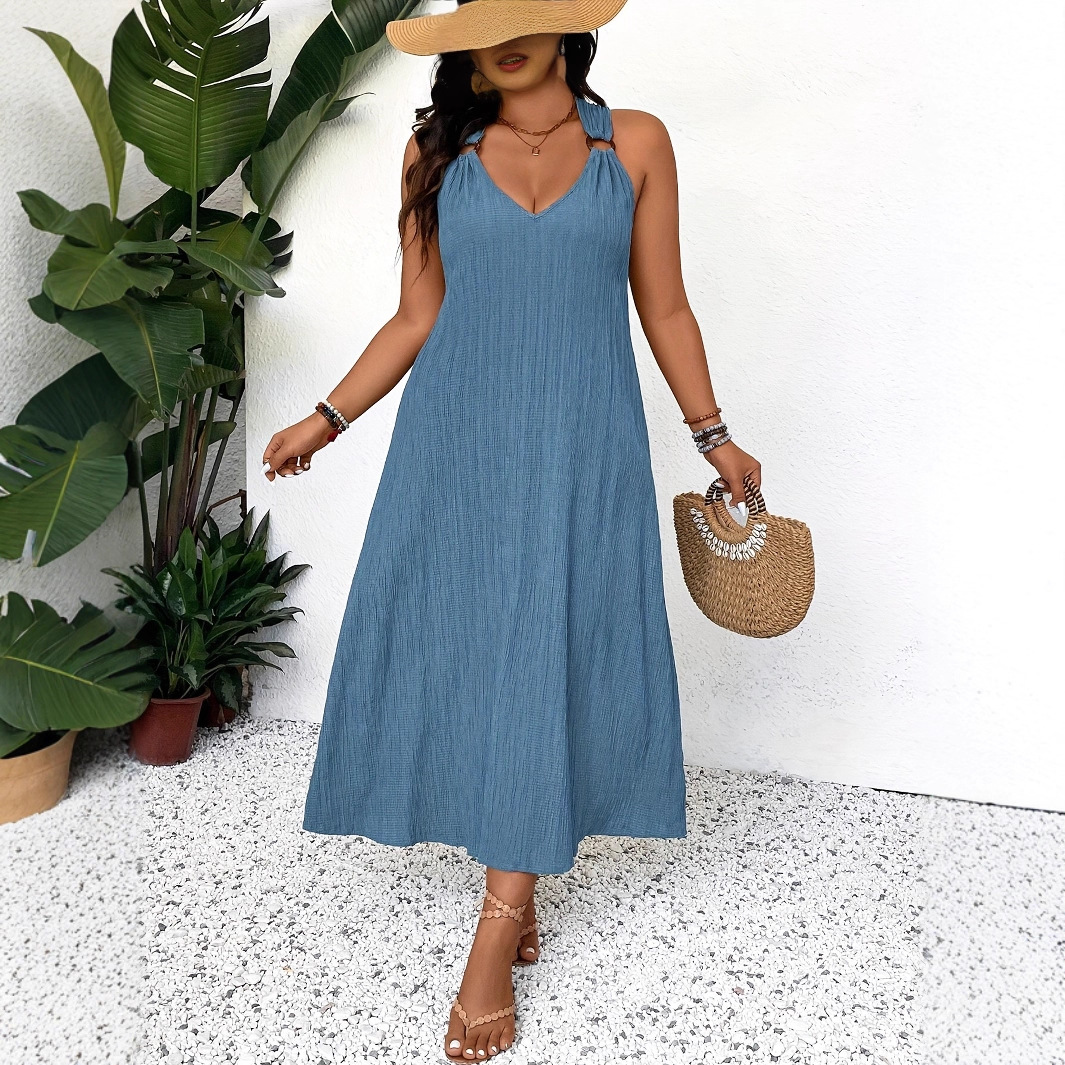 Elegant French-style Deep V-neck Sleeveless Maxi Dress