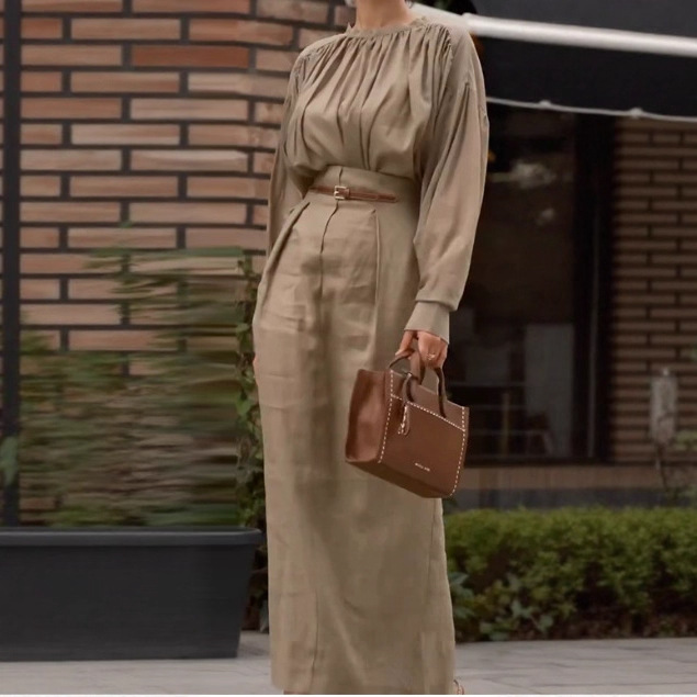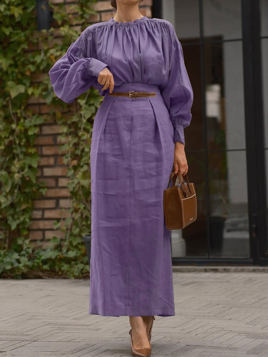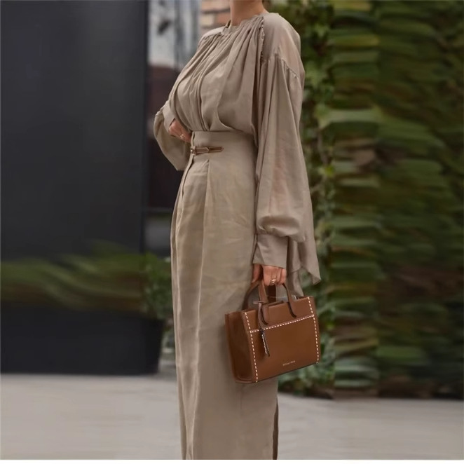 Elegant French-style Long-sleeve Solid-color Shirt For Independent Online Stores Long Skirt