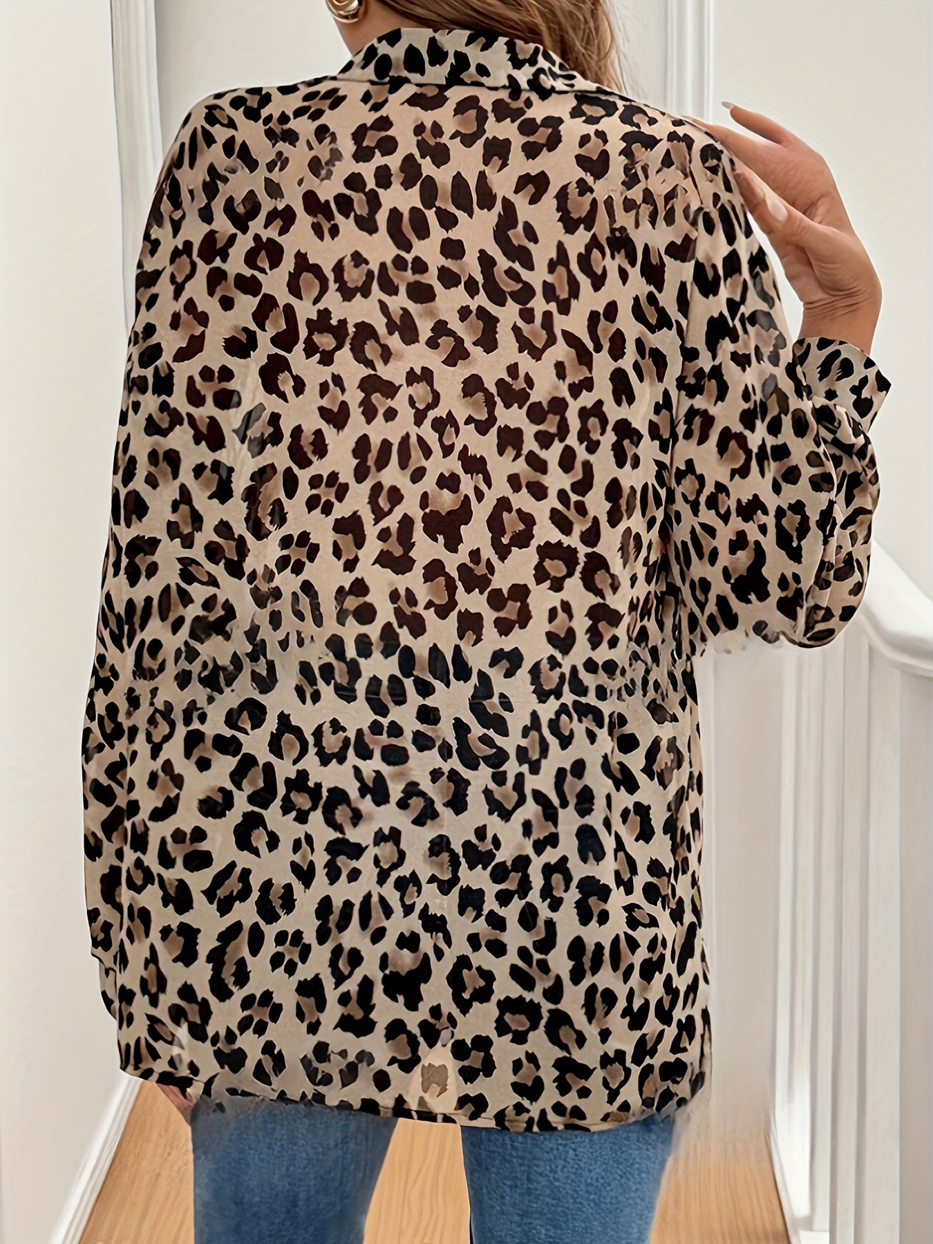 Elegant Leopard-print Long-sleeve Loose-fit Blouse