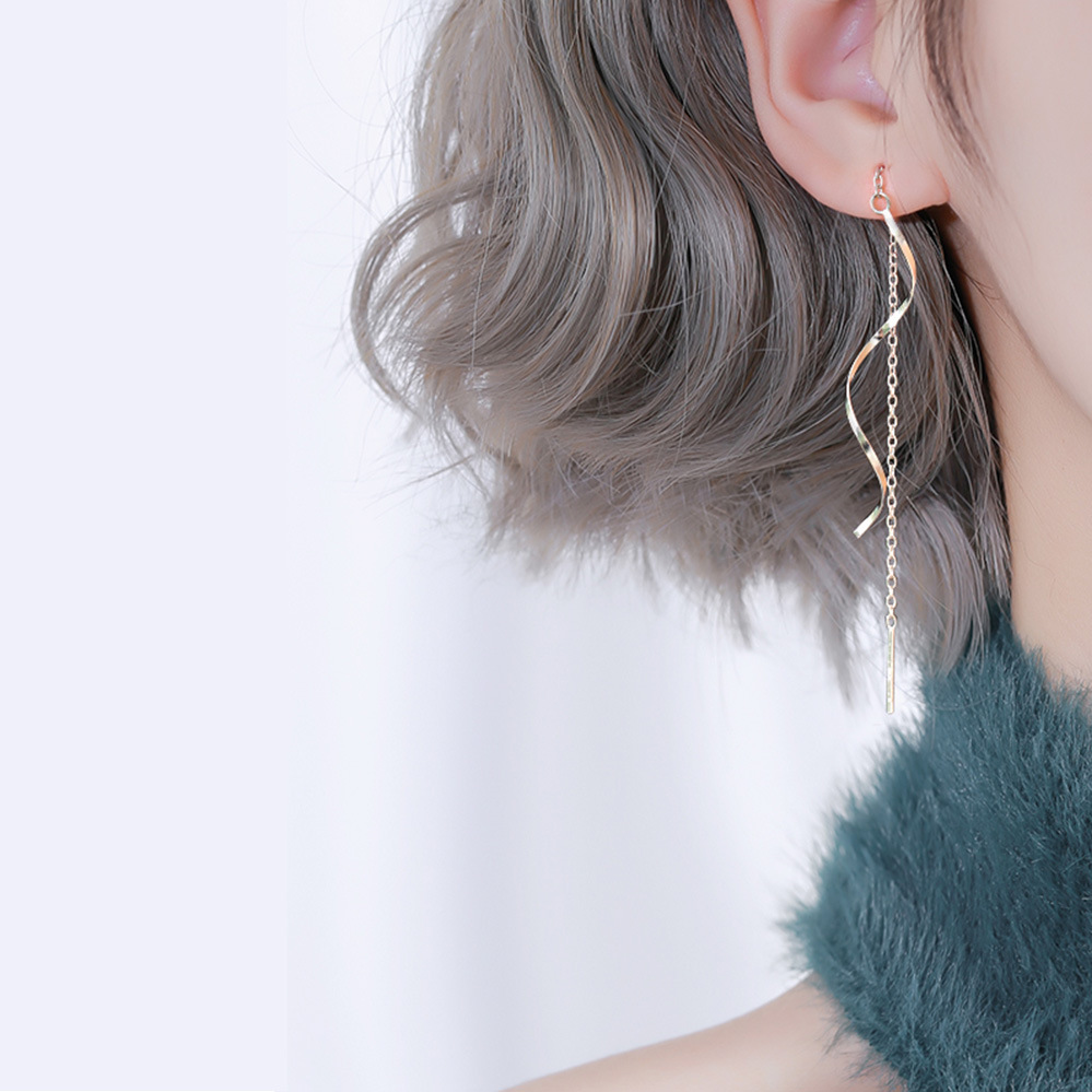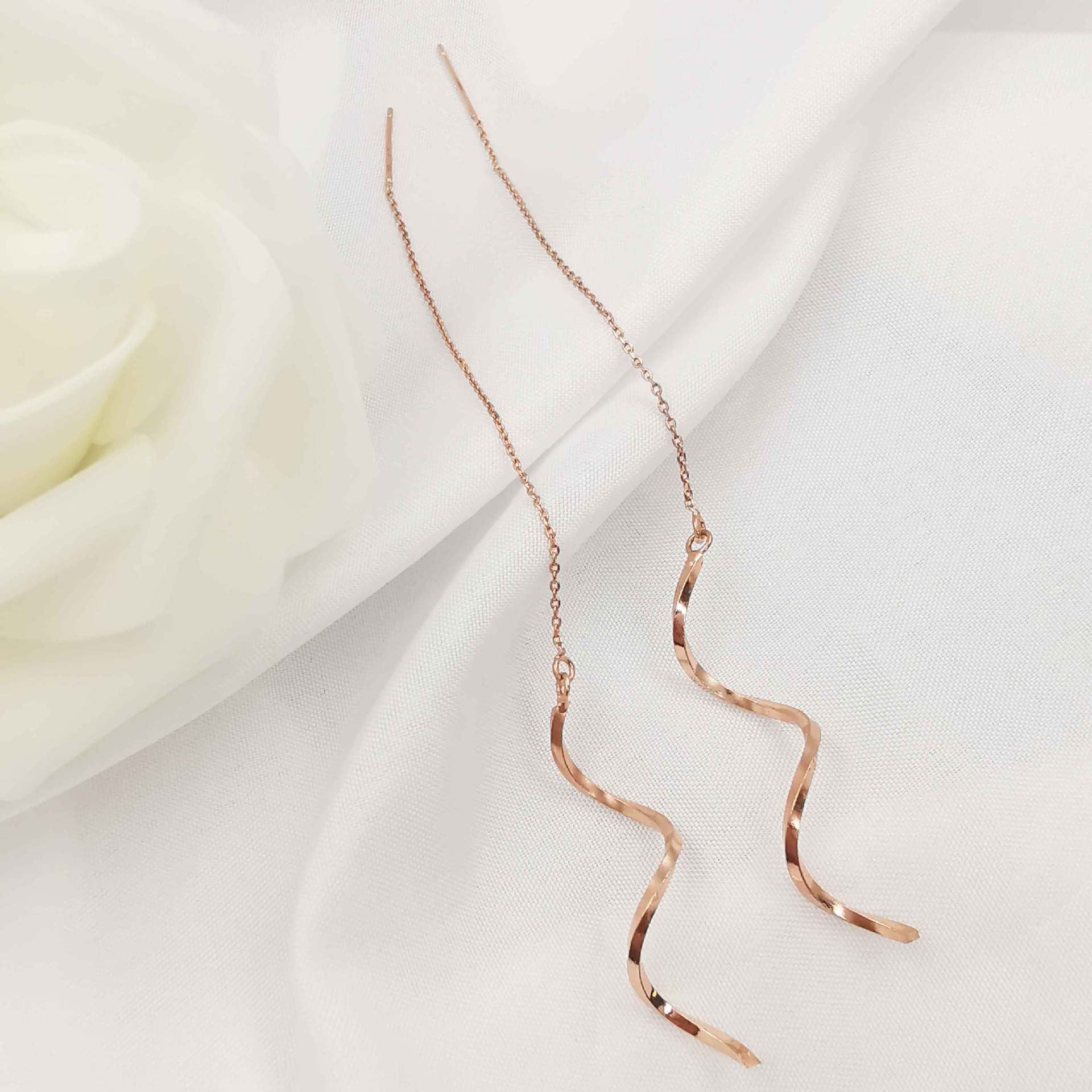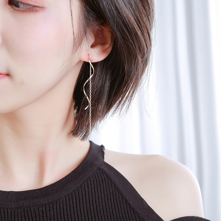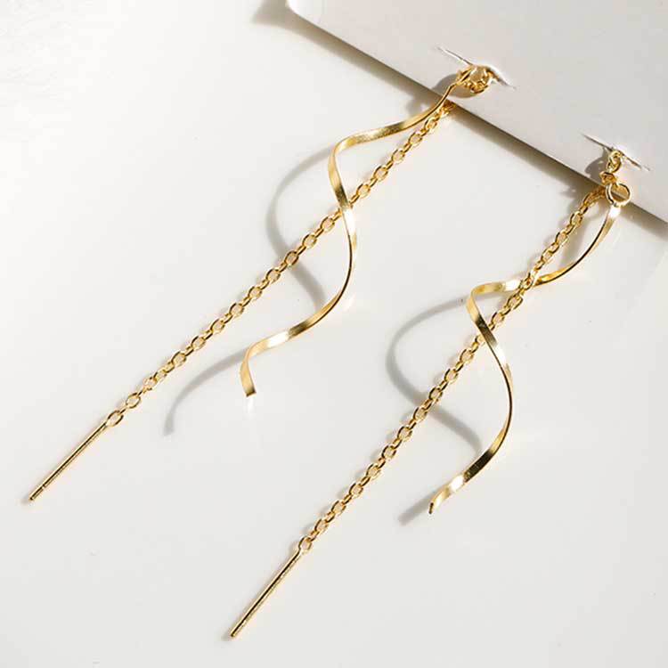 Color: wave line hanging earrings [white gold color], wave line hanging earrings [yellow gold], wave line hanging earrings [rose gold]]