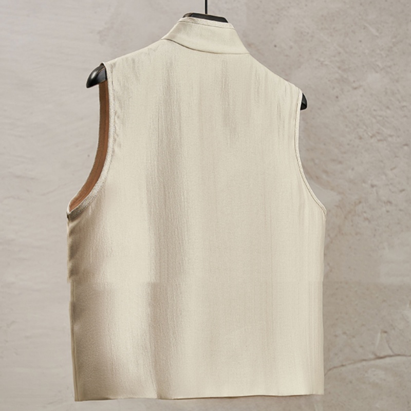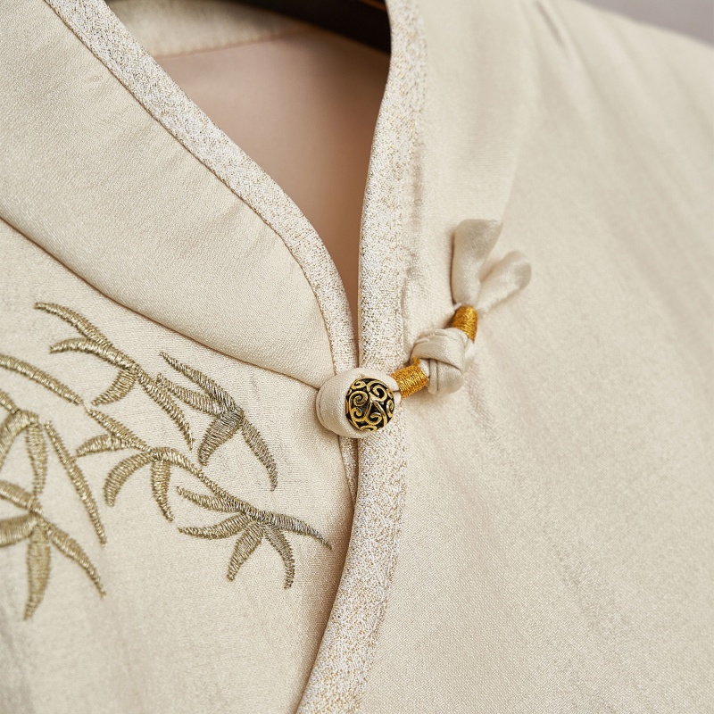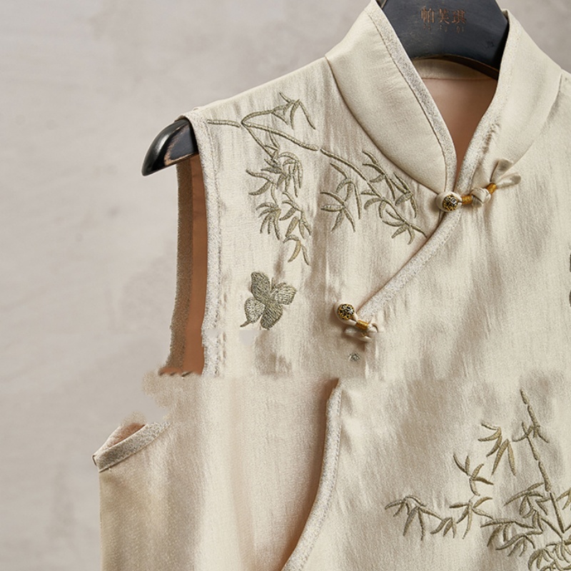 Elegant New Chinese-style Set Bamboo Embroidery Slanted Placket Stand Collar Vest Top