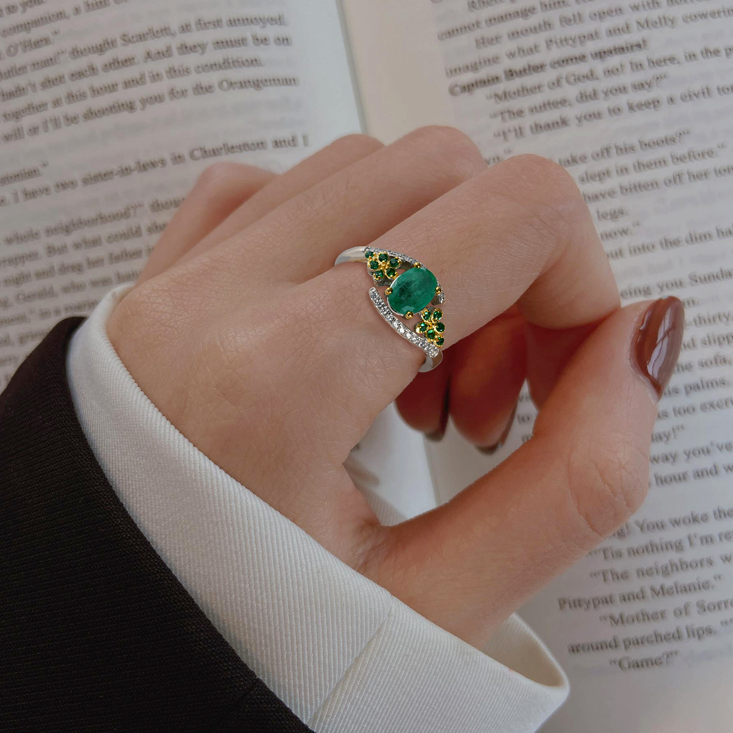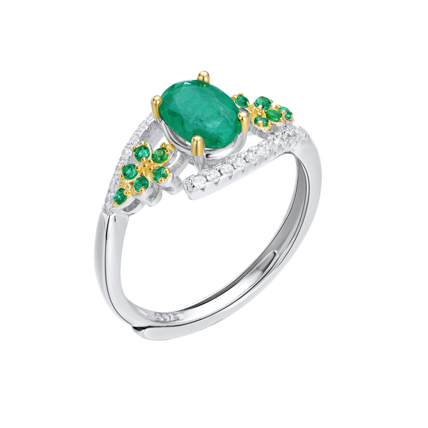 Main stone: Dan shaped emerald, about 5 * 7mm, 0.9Ct