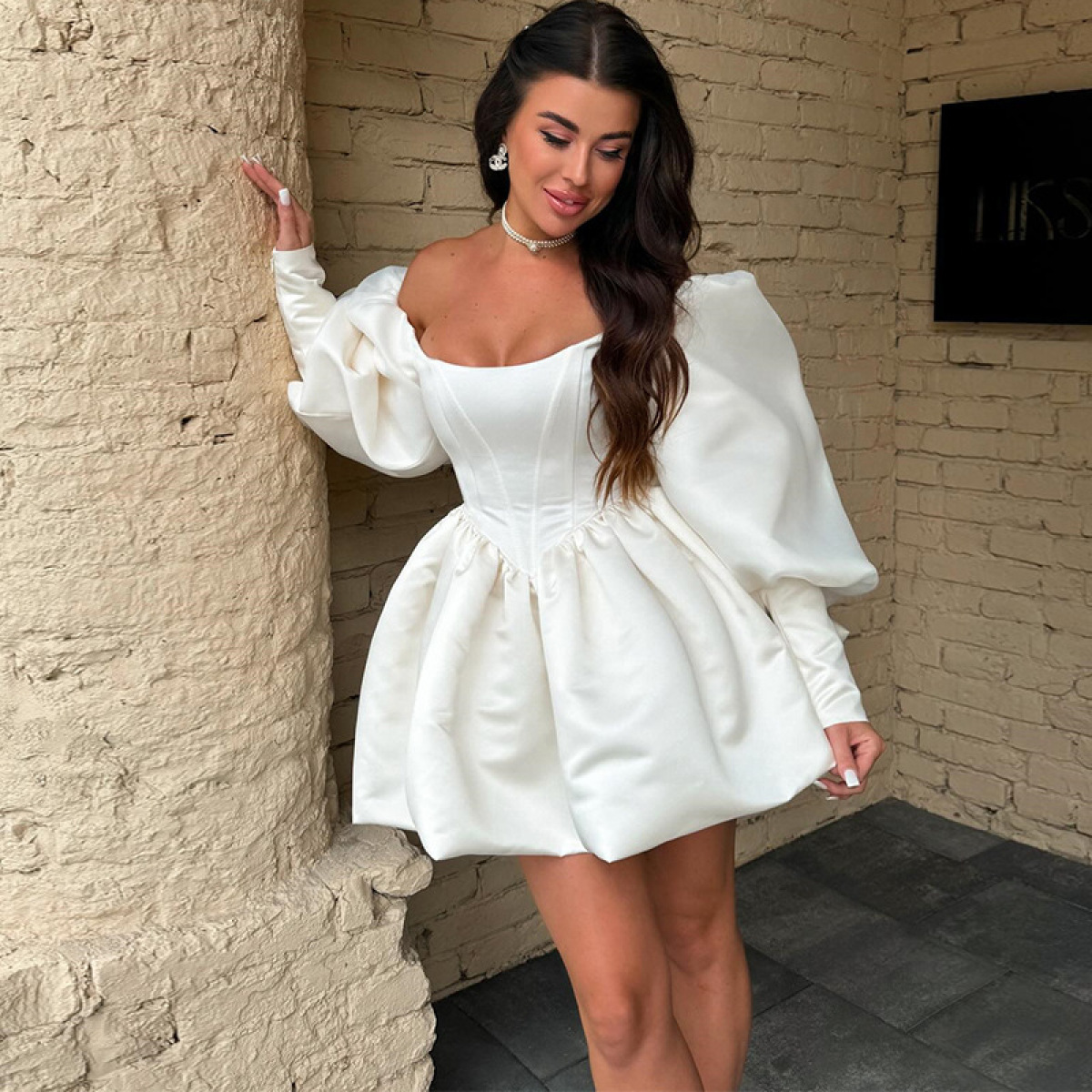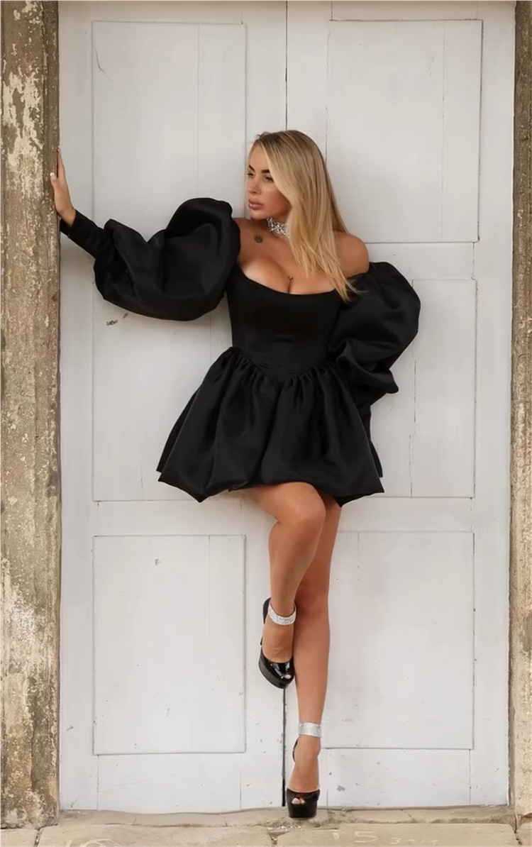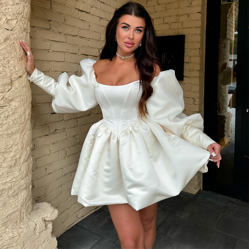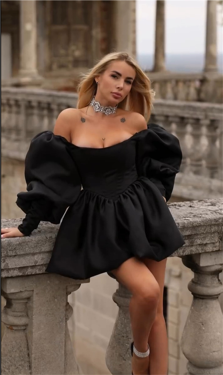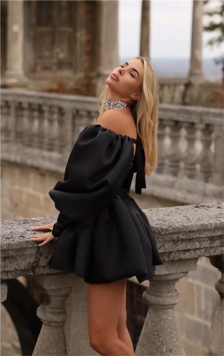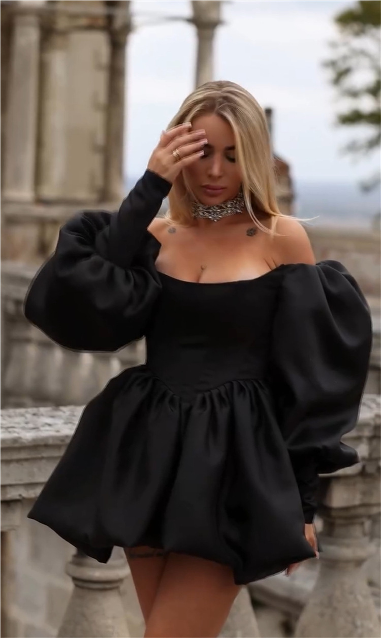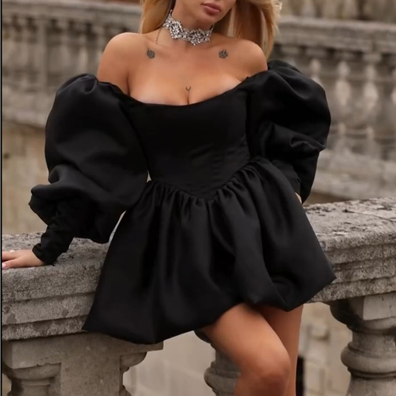 Elegant Off-Shoulder Lantern-Sleeve Dress For Women
