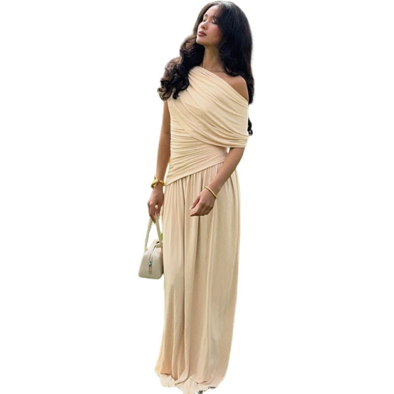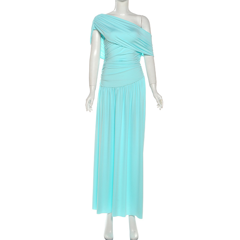 Pattern Solid Color Skirt Style Bodycon Skirt Colors Blue, Khaki Waist Style High Waist Sizes S, M, L Style Category Street Fashion Combination Method Single Piece Skirt Length Floor-Length Trendy Element Off-Shoulder Design Off-Shoulder Sleeve Style Sleeveless Main Fabric Composition 100 Polyester Sleeve Length Sleeveless Skirt Type One-Piece Dress Style European And American Style Craftsmanship PatchworkQuilting