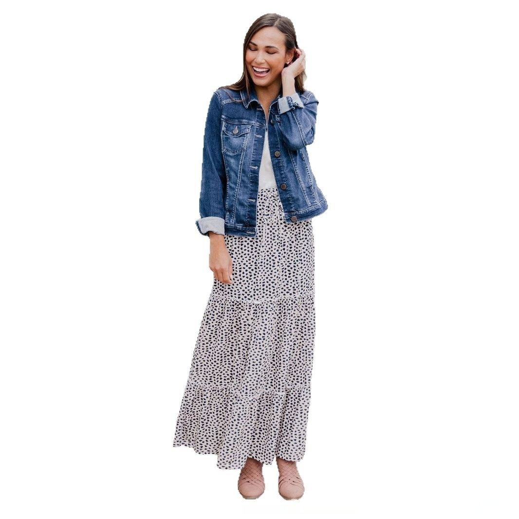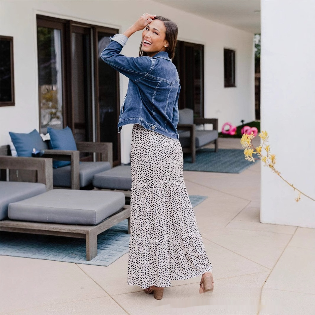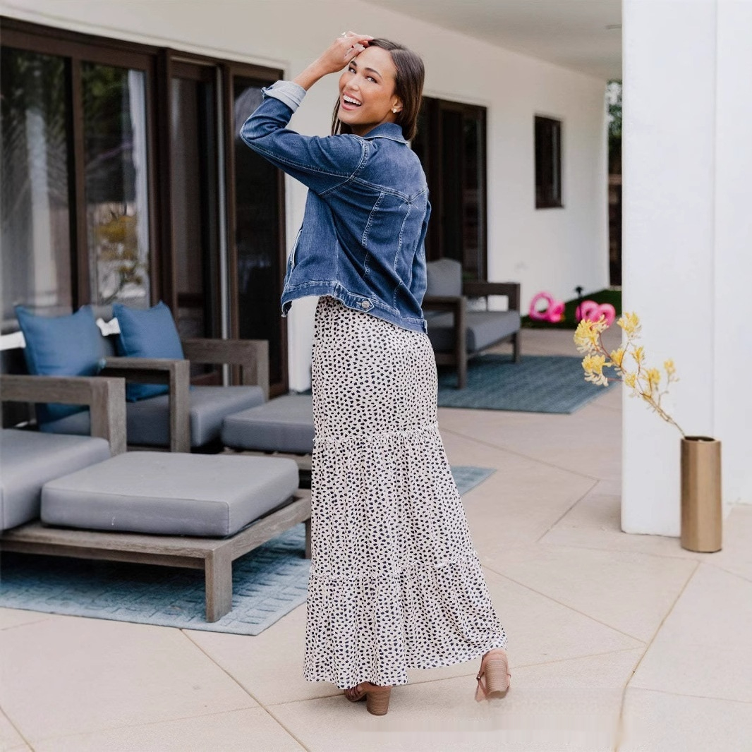 Elegant Rayon Printed Stitching High Waist Summer Dress